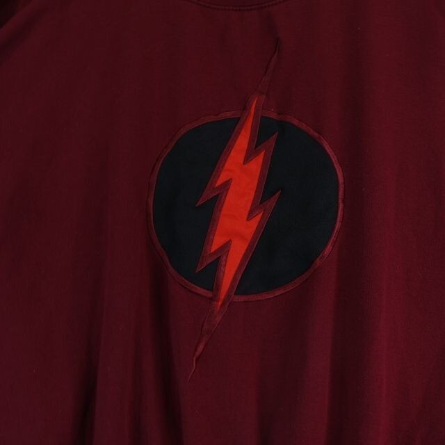 This sweatshirt is made for superhero fans who want to stay cozy while zooming around at lightning speed. It’s maroon, flashy, and fun. The size is M but please see the last photo for additional measurements. • Crewneck design • Flash lightning bolt emblem • Ribbed cuffs and waistband • 60% cotton, 40% polyester • Machine washable Pre-owned and in good condition.
