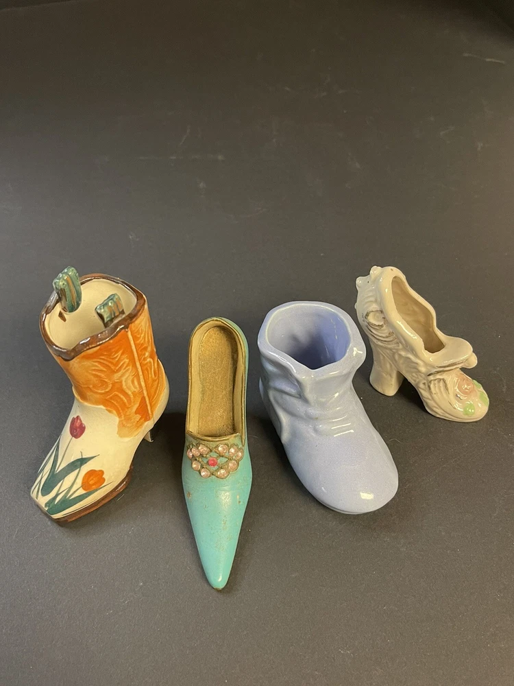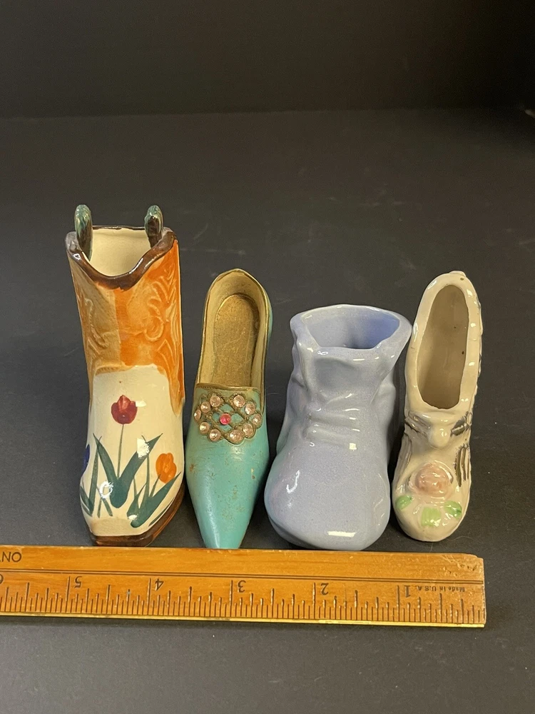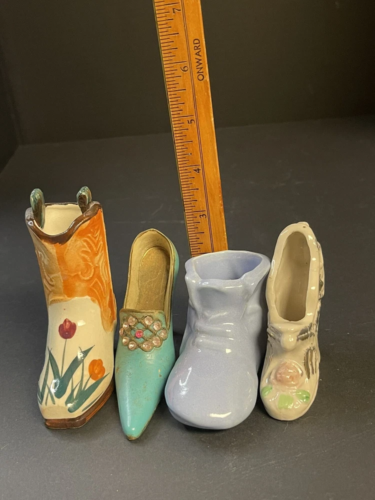 Add a touch of Victorian charm to your collection with these small ceramic and metal miniature shoes or boots. These collectibles feature a mixed material construction, with glossy finishes that lend them a classic aesthetic. Perfect for all occasions, these novelty shoes or boots are ideal for teens, boys, girls, adults, and unisex baby and toddlers. One Boot is marked OCC Japan. This miniature shoe or boot collectible comes unboxed and is an original product from mid 20th century China. These shoes or boots are not customized and are not signed. The design features a beautiful Victoria pattern and is a part of the Classic Collection. Adorned with multicolor and made of mixed materials, ceramic, and metal, these figurines are a must-have for any decorative collectibles or sculptures & figurines enthusiast. Please view pictures as they are part of the description, and certainly feel free to ask questions. All items carefully packaged and processed within two business day upon receipt of payment excluding holidays and weekends. T hank you for looking. This item is from a smoke free home. Please view all the photos. Check out all my other items. We ship in the US only.