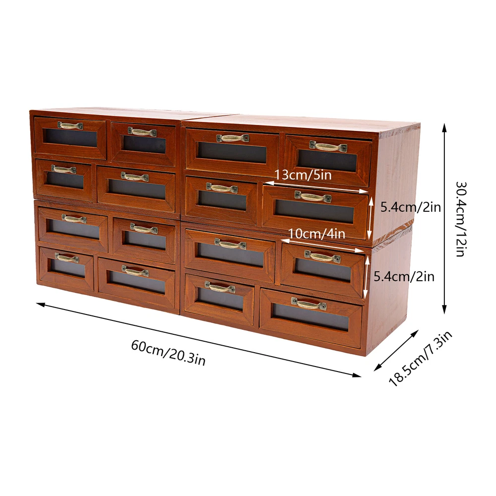 Vintage Small Wooden Desktop Storage Box Drawer Display Shelf Organizer Craft US Description Maintaining cleanliness and order in our lives can have a positive effect on our mood and overall well-being. With a total of 16 drawers, our 4 pieces of 4-drawer desktop drawer organizers provide enough storage space while boasting a beautiful and functional design. With this product, you can organize your belongings effortlessly and efficiently, leaving you feeling structured and at ease. Take it with you to enjoy a tidy life! Key Features Made to Last: This product is made of high-quality solid wood and iron, ensuring a stable structure. It is environmentally friendly, sturdy, long-lasting, and not easy to deform. Meet Your Needs: Our product consists of four 4-drawer desktop drawer organizers that can be easily adapted to meet your needs and preferences. Excellent Organizer: 16 drawers(8 large drawers and 8 small drawers) allow you to sort charging cables, cosmetics, Chinese herbal medicines, cards, pictures, and other small daily necessities, creating a cleaner and tidier home/office environment. Exquisite Appearance: Natural solid wood presents a beautiful texture, filled with the flavor of the precipitation of the years, revealing a strong retro flavor, reflecting the unique charm of the home decoration. DIY Arrangement : The 4 pieces allow you to use them individually, stack them against a wall, or place them side by side on a table so you can make better use of the available space. Effortless Cleaning: It has a smooth surface and simple structure, so you only need to wipe the dust off with a towel. Ideal Gift: With good practicability and a classic appearance, it can be used as an ideal housewarming/holiday gift for parents, friends, and lovers so that they can also enjoy a more exquisite life. Good Customer Service: We aim to provide quality products and services. If you have problems, please feel free to contact us. We will reply and solve the problem for you as soon as possible. Details Drawer Handle: It allows for easy opening of the drawer for convenient access to your belongings. Clear Windows: This design allows you to see the items categorized and stored inside, making it easy to find. Application It can be placed in the bedroom, living room, office, study room, children's room, store, and other places to store charging cables, cards, pictures, cosmetics, herbs, and more. Specification Material: Wood, Acrylic, Iron Color: Brown Style: Vintage Shape: Rectangular Assembly Required: No Mounting Type: Tabletop Number of Pieces: 4 Number of Drawers of Each Piece: 4 Number of Total Drawers: 16 Each Large Drawer Size(L*H): 13*5.4cm/5*2in Each Small Drawer Size(L*H): 10*5.4cm/4*2in Product Overall Size: 60*18.5*30.4cm/23.6*7.3*12in Package Size: 66*21*36cm/25.98*8.27*14.17in Each Piece Load Capacity: 4kg/8.82lbs Total Load Capacity(4 Pieces): 16kg/35.27lbs Gross Weight: 7.5kg/16.53lbs Net Weight: 7kg/15.43lbs Package Included 4*4-drawer Desktop Drawer Organizers Notes Please allow the slight color difference caused by the shooting light and 1-3cm error due to manual measurement, and make sure you do not mind before ordering. Payment Delivery details Terms of sales About us Contact us Payment We accept ebay payment 。 Fees such as import duties, taxes are not included in the item price or shipping costs. These charges are the buyer's responsibility. Delivery details Shipping: 2-9 working days to: USA Terms of sales We maintain high standards of excellence and strive for hundred percent customer satisfaction. Feedback is very important to us. We hope that you contact us immediately before you give neutral or negative feedback, so that we can address your concerns. It is impossible to address issues if we do not know about them! About us Your satis faction is our ultimate goal. We work hard to earn your trust and future business. Our certified technicians have tested each item before shipping. The unit comes with 1 year limited warranty on all manufacturing defects. a) If you receive a defective item, you may return it or ask for a discount. Please contact us within 14 days after you receive the package. b) What you returned must be intact and in its original packaging as re? u. Customer is responsible for shipping costs of the returned item. c) We will cover the cost of shipping back t with the shipping rate indicated in the registration page. We will send you a new unit or refund the full payment you paid. Thank you. Contact us Business Hour Business Hour: Monday To Friday: 8:30 AM to 5:00 PM (Beijing China time) Due to time zones, our reply to your questions may not be immediately. But within above working time, we will reply your email within 24 hours. If it's non-workdays, please kindly be patient and wait till Monday. Please contact us with ebay message. Please feel free to contact us if you have any questions. Monday To Friday: 8:30 AM to 5:00 PM (Beijing China time) Due to time zones, our reply to your questions may not be immediately. But within above working time, we will reply your email within 24 hours. If it's non-workdays, please kindly be patient and wait till Monday. Please contact us with ebay message. Please feel free to contact us if you have any questions. Warranty 5 Years Manufacturer Warranty 10 Years Feature! Stable performance, durable Number of Drawers 16 Door Style Drawer Number of Shelves see the picture Item Width (Interior) see the picture Department Adults, Teens, Kids Item Length (Interior) see the picture Item Height (Interior) see the picture Additional Parts Required No Handle Material Iron Number of Doors see the picture Brand Unbranded Item Height 12in Item Length 20.3in Item Width 7.3in Type Drawer Cabinet Material Wood, Acrylic, Iron Features Drawers Color Brown Mounting Free Standing Assembly Required No Item Weight 7kg/15.43lbs Item Depth see the picture MPN Does not apply Model / Shape Rectangular Style Vintage/Retro On Feb 20, 2025 at 19:54:27 PST,