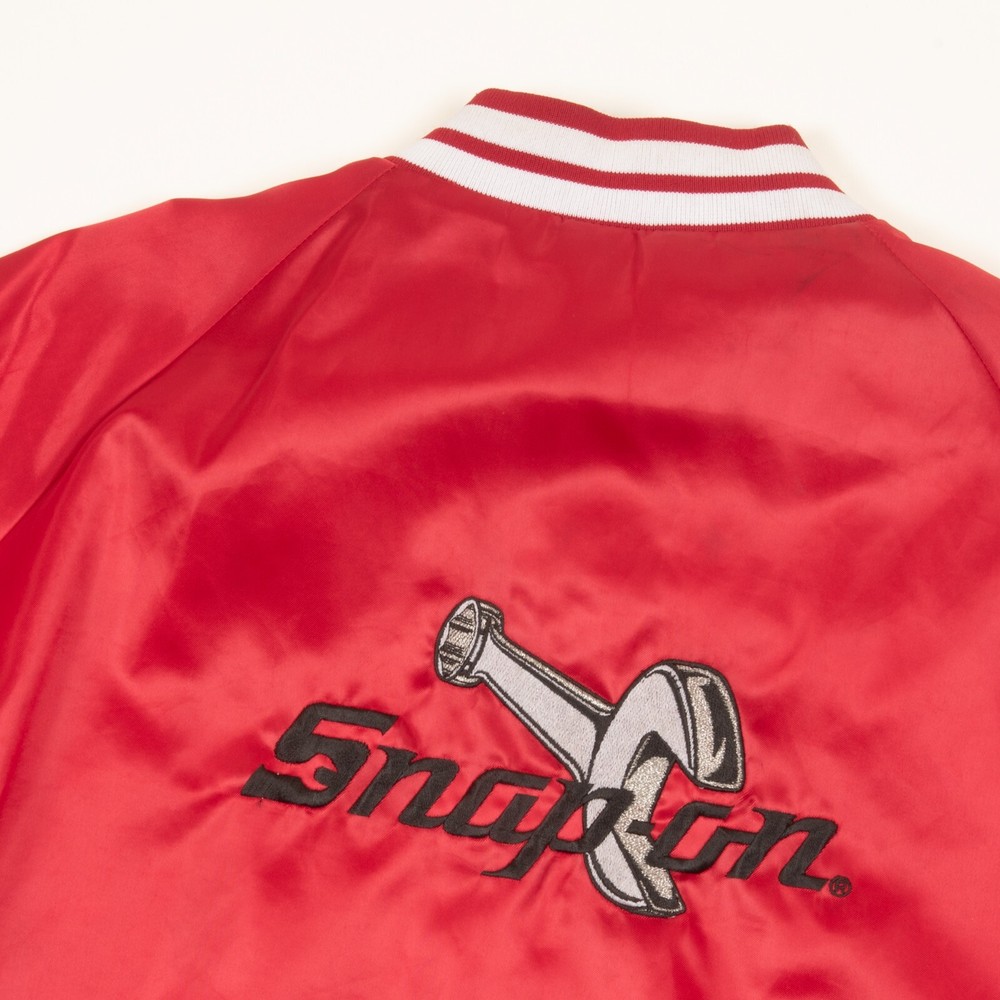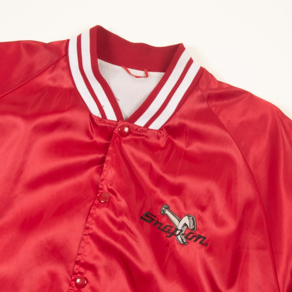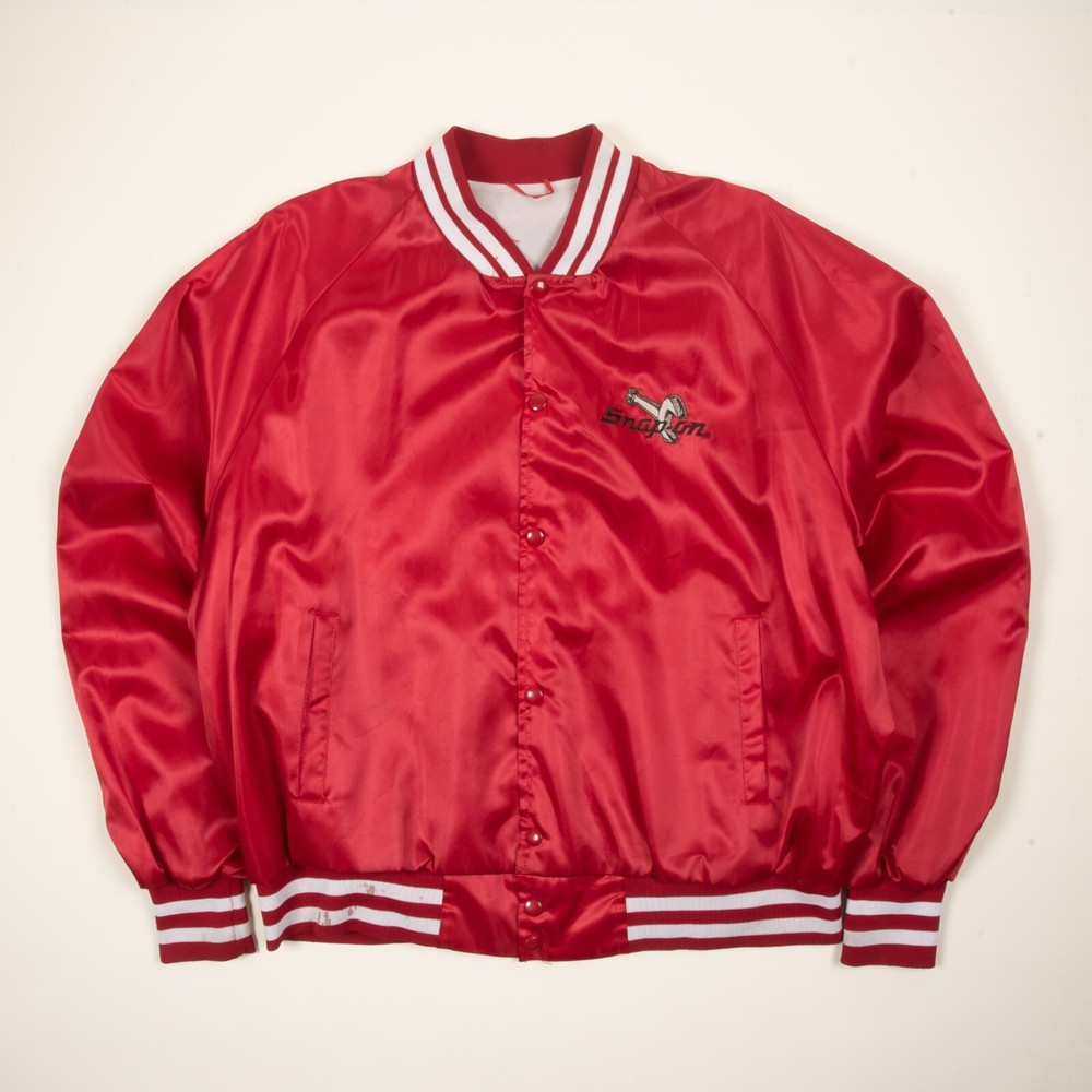 Type: Jacket Brand: Snap-on Vintage: Yes Size: XL Closure: Snap Size Type: Regular Accents: Embroidered Style: Bomber Jacket Outer Shell Material: Nylon Fabric Type: Satin Colour: Red Department: Men