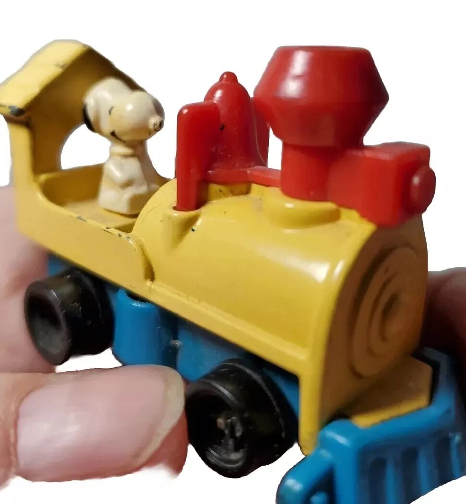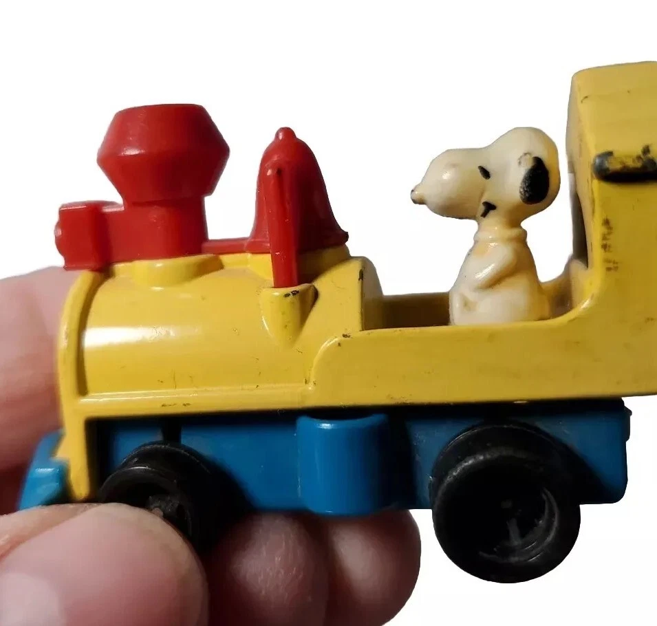 Vintage Snoopy Locomotive Miniature Diecast Car 1958 Red And Yellow Train Aviva