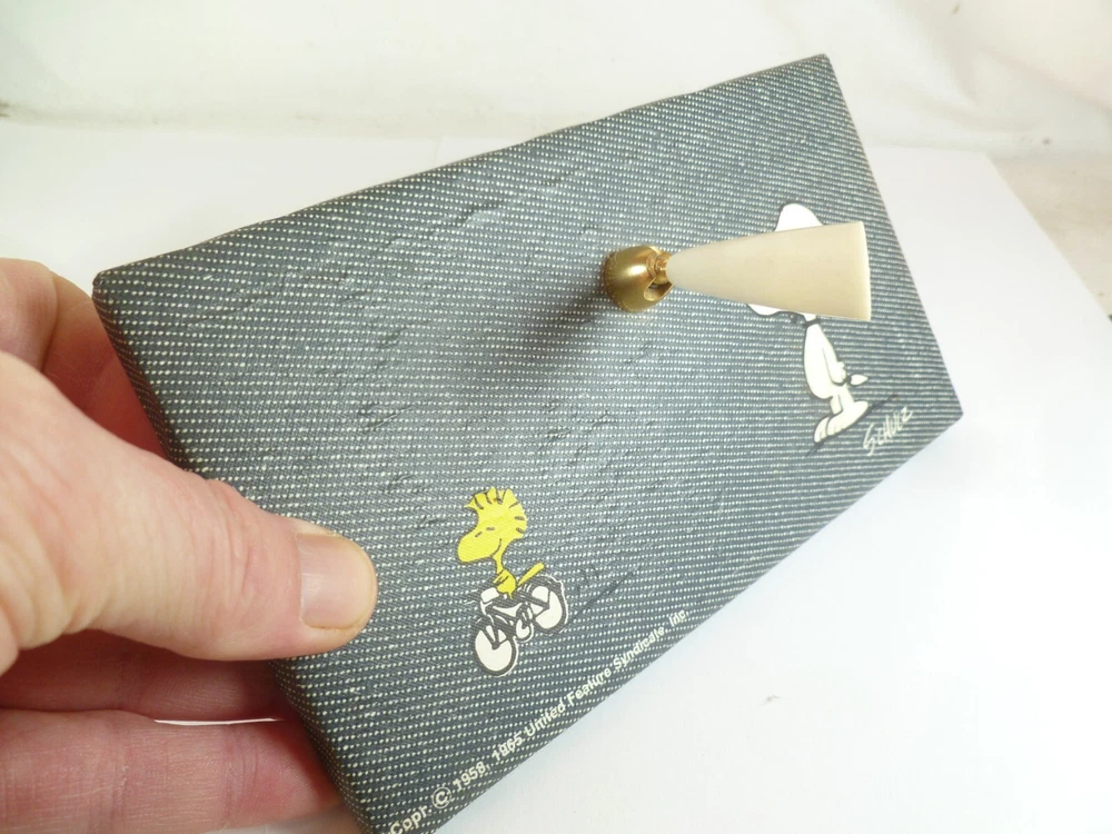Up for sale is 2 matching Snoopy Desktop Accessories. A pen holder and a notepad holder. The pen holder measures 7" X 4" and has bubbling to the surface. The notepad holder measures 6 1/4" X 4 1/4"....the inside of the notepad holder is for 6" X 4" paper/pad.