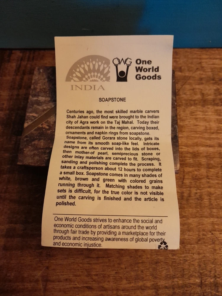 Shape: Rectangle Pattern: Flower Item Height: 1.25 in Brand: Unbranded Features: With Lid Handmade: Yes Department: Kids, Teens, Adults Original/Reproduction: Original Country/Region of Manufacture: India Occasion: All Occasions Color: Brown Size: Small Type: Jewelry Box Item Length: 4 in Subject: Bird Item Width: 3 in Material: Soapstone