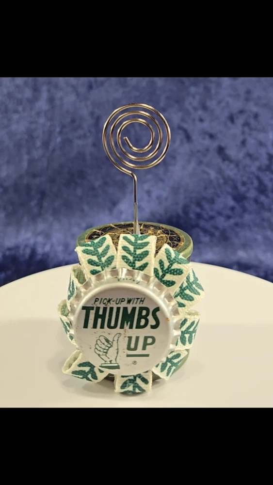 A vintage wooden thread spool and vintage THUMBS UP soda bottle cap is a fun way to display your business card, a photo, a greeting card or a note! The spool has its original thread that has been given a clear coat to make it last. Display a photo, a special card, or a note! 3.25" tall Please see all photos as they are a part of the description. PLEASE ASK ANY QUESTIONS YOU MAY HAVE BEFORE BIDDING. ********************************************************** We do accept other forms of payment...please ask before bidding . If the item you are interested in, is a vintage collectible, please have reasonable expectations. In spite of our best intentions we may miss something.... ASK if you are unsure BEFORE you bid, we will be happy to help. 30 day return policy. Refunds are for purchase price only. Items must be returned in the same condition as they were received. Buyer is responsible for the cost of return shipping. If your items are damaged during transit please let us know immediately and photos of the damage item & box may be needed to process any applicable claims. Shipping charges are non-refundable. We maintain high standards of excellence and strive for 100% customer satisfaction! Positive Feedback is very important to us. Please contact us first before you leave Neutral or Negative Feedback or open eBay disputes. We promise we will do our best to solve the problem, thanks! Payment to be made within 3 days of the auctions' end. We will combine shipping, just let us know if you are bidding on more items.