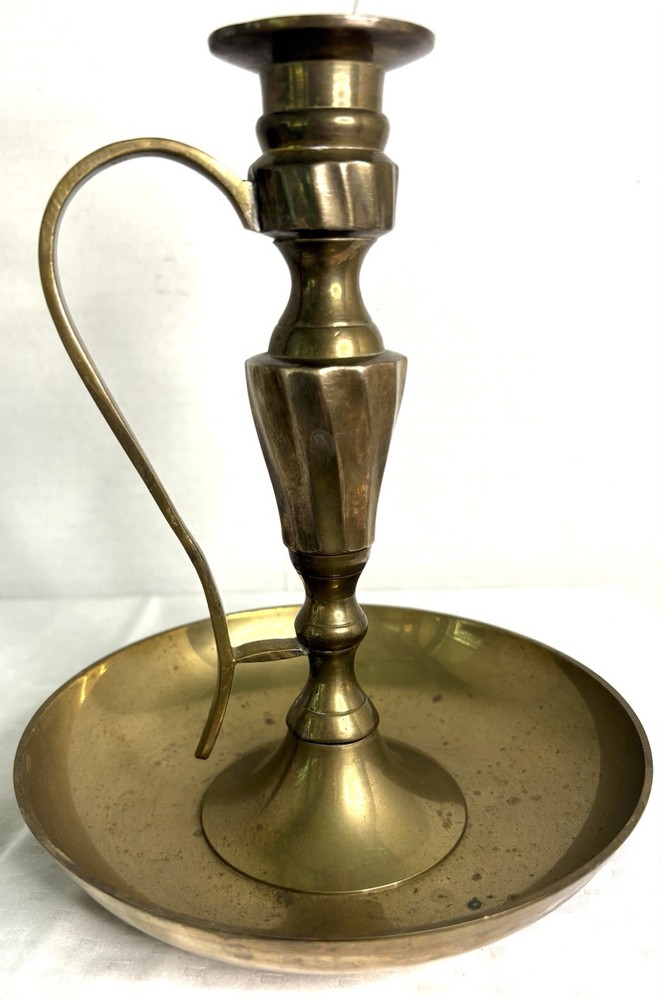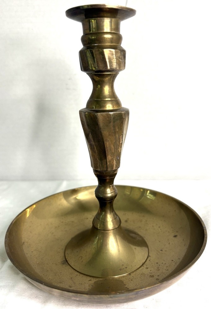 Vintage Solid Brass Chamberstick Candle Holder 3.5”H x 5”W