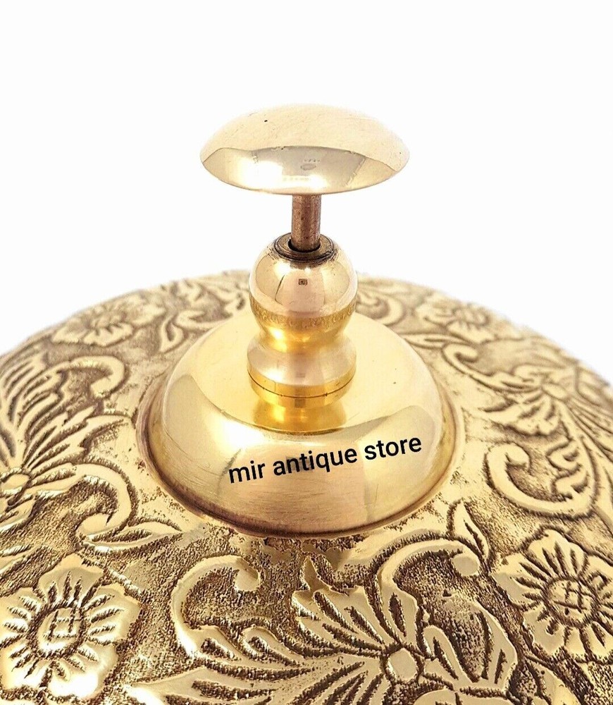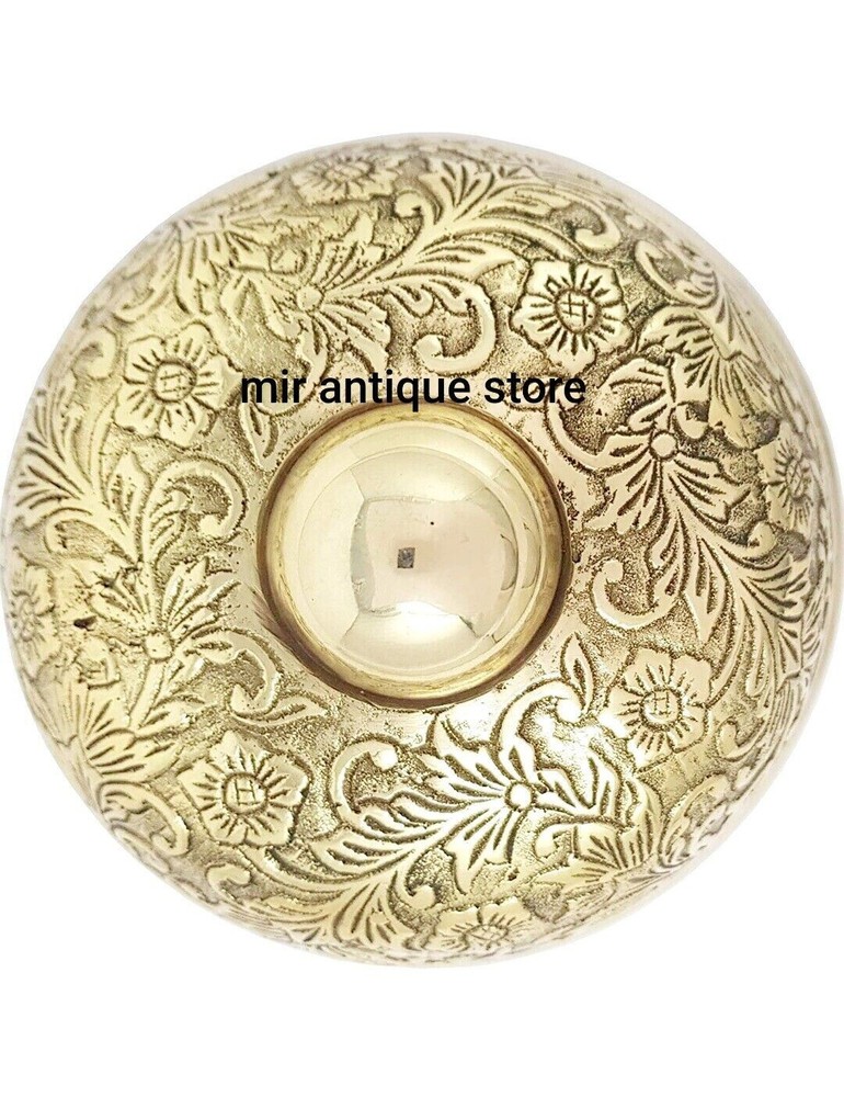 !! WELCOME TO THE MIR ANTIQUE STORE !! This beautiful solid brass desk bell is a perfect addition to any space. Handmade in India, this ornate table bell features a nautical theme with a gold color and shiny finish. Its round shape and medium size make it suitable for all occasions and perfect for reception areas or desks. The bell is a collectible item that can be used as a decorative piece and is ideal for girls' rooms. Its unique design and high-quality brass construction make it a valuable addition to any collection. Whether you're a collector of nautical-themed decor or looking for a stylish desk bell, this handmade item will surely impress. Description : Material : Brass Finish : Shiny Brass Size : 5.5 x 5.5 x 4 inch, 14 x 14 x 10 cm Approx Weight : 0.800 gm Approx Desk Bell Solid Brass Beautiful Desk Bell Office Bell Calling Bell Teacher Desk Bell Look Photos For Actual Image Of Product. All Work is Hand Made This is a Reproduction Item, Not As Antique Good Piece Of Collection Table Top Decorative Home Decorative Room Decorative !! YOUR FEEDBACK IS EXTREMELY IMPORTANT FOR US TO GROW OUR BUSINESS ON EBAY, SO PLEASE DO LEAVE POSITIVEFEEDBACK !! Return Policy: We accept 30 free return for our buyers. Payment Policy: We accept payoneer payments.. !! SPECIAL DISCOUNT FOR WHOLESALE & BULK INQUIRY !!