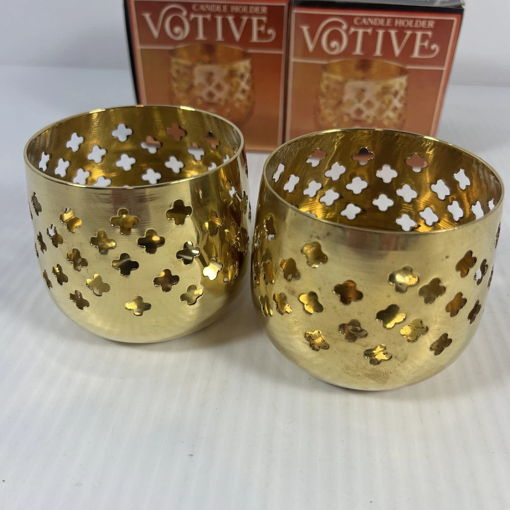 Vintage Solid Brass Votive Tea Candle Holder India Lot 2 Boxed in original packaging, very slight wear to finish, shiny, appears unused, see photos see photos for measurements We have multiples available at this writing Check our storefront for a current COUPON CODE for discount on purchases of multiple items We offer discounted shipping for purchases of multiples and volume pricing on most items All items come from smoke free storage environment Ships within 1 day of purchase, most shipped same day Be sure to visit our store for many other items We are a general store, so you never know what might come in CLICK HERE and Visit Our eBay Store: Robin's General Store