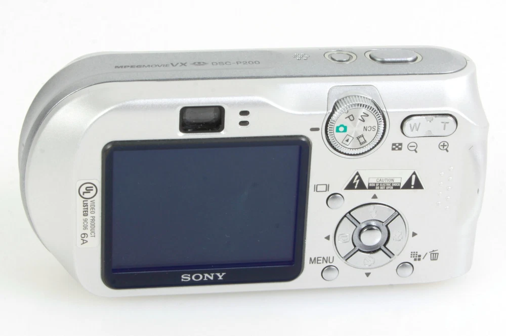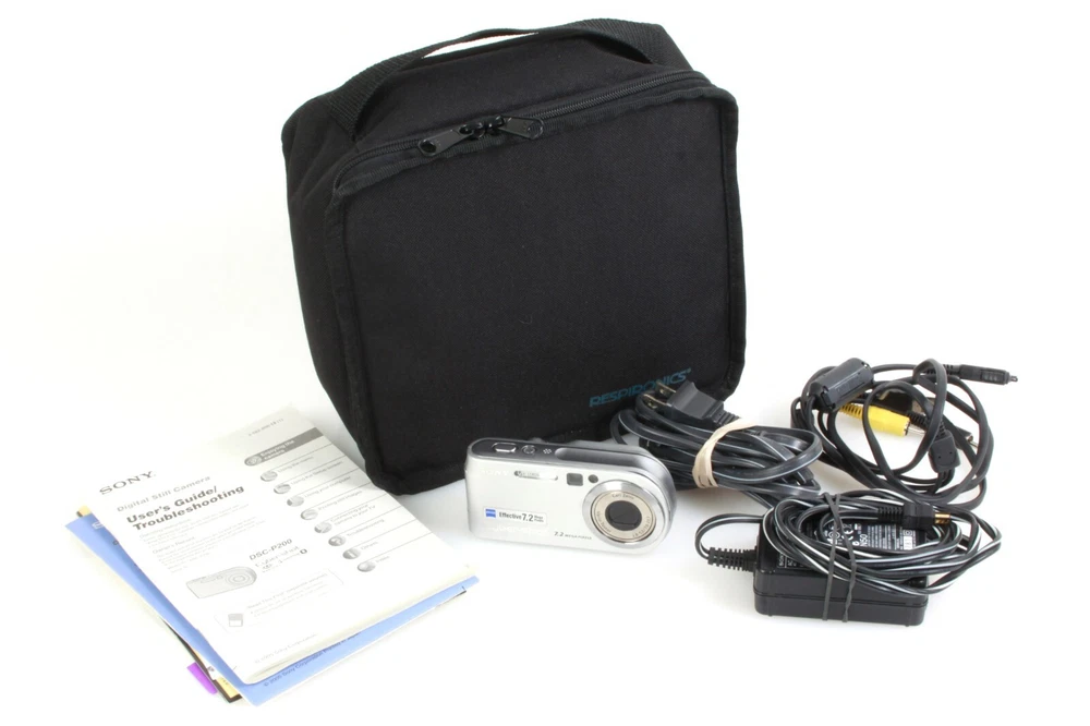 Sony Cyber-shot DSC-P200 digital camera. Tested and in working order. Cosmetically it is in very good condition with only light signs of use. Comes with 256MB memory card, NP-FR1 battery, AC-LS5 AC power adaptor, cables, manual and case. The case measures approximately 8.5 x 8 x 3.5 inches. bpc1009568 _______________________________________________ We sell a variety of used antiques and camera equipment, plus more. We do our best to test all of our items and accurately describe any flaw or defect we find. If you come across an issue that we have overlooked, please contact us. We will be happy to work with you to resolve the issue Make sure you have seen all shipping options for purchasing. ____________________________________________ Shipping We use USPS & UPS for domestic and international along with standard international from ebay We ship within 1-3 business days from receiving payment. Tracking numbers are automated by eBay for each order when the shipping label is made In the event of a return, shipping charges are not refundable unless the item is not as presented and the item is not described as an "As-Is" sale. CUSTOMS CUSTOMS MAY ADD additional costs upon delivery to your country. These charges are normally collected by the delivery company or when you pick the item up. PLEASE DO NOT confuse them for additional shipping charges. Please contact us through eBay with any questions. THANKS FOR LOOKING!