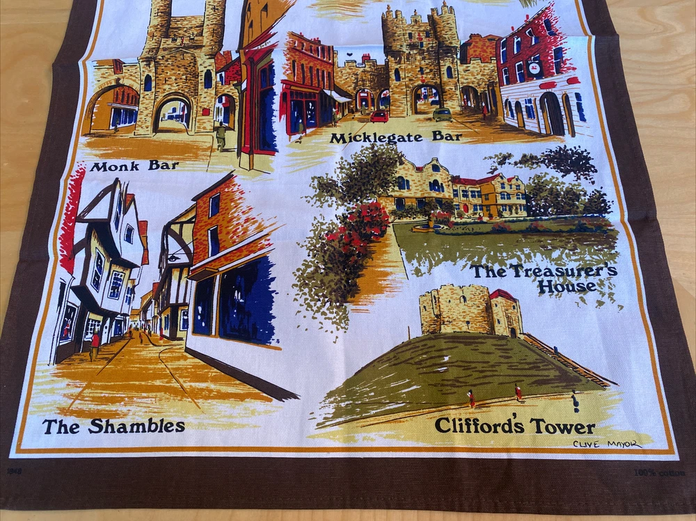 Vintage Souvenir YORK Kitchen Dish Towel WALL DECOR CLIVE MAYOR 19 x 28.5” New. 100% cotton.