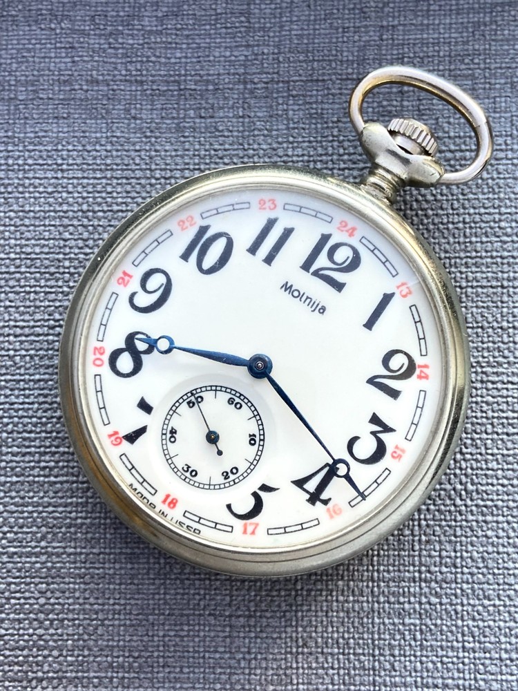 Molnija Soviet Vintage Pocket Watch 1970s Great model for themed professional vintage gift or for collection! The "Tale of Urals" the series of pocket watch Molnija had image stonemason - character from Ural fairy tales and associated with the Ural Mountains, historical events of the Urals. This pocket watch Molnija was made at the Chelyabinsk watch factory at 1970s. The case diameter is 50 mm, w/crown 54 mm . The mechanism cal. 3602 is mechanical and hand-winding The pocket watch has have an additional dust cover The pocket watch has good cosmetic condition for vintage pocket watch. The mechanism is fully functional and was served by a professional watchmaker. All the details you can see in the pictures. See the pictures . All the pictures are actual. Also I can provide combined shipping for several of my items. If you have any questions about delivery or about item, please let me know . Thank you. Dear customers, I send parcels by Ukrposhta worldwide from Ukraine without delay. The delivery time is now the same as before, regardless of the situation in my country. All services are working. Therefore, please not worry when ordering in my store. All parcels have been delivered to customers I sell vintage watches from USSR period. The watches was served and restored. The vintage watches are still good accessories. Also broken watch parts for creative projects and jewelry making. All the proceeds from sales support my family and support the economy of Ukraine.