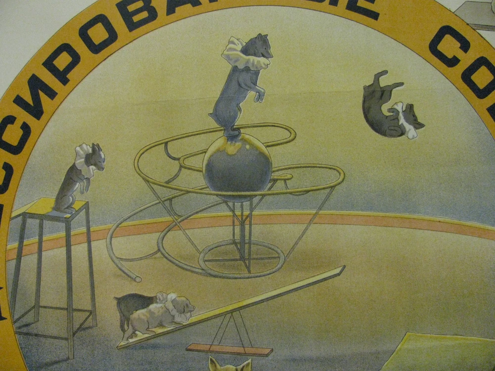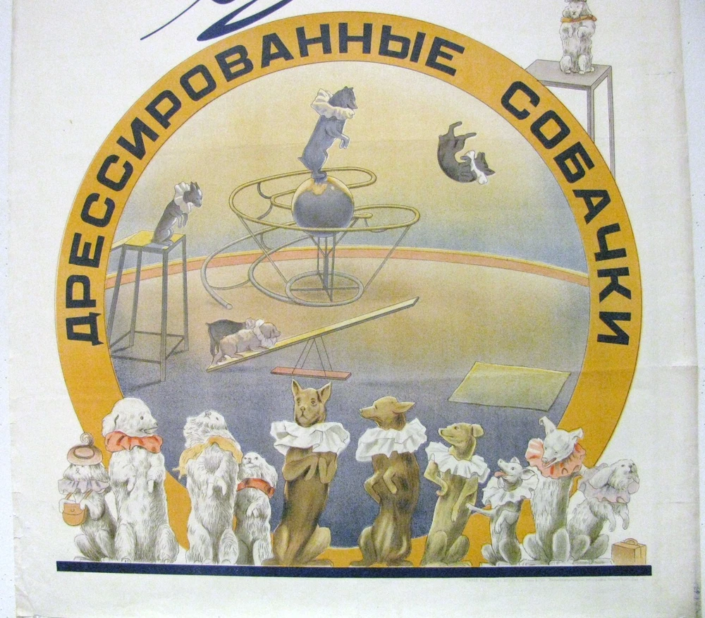 You are looking at a remarkable rare piece of the soviet art of CIRCUS. This 100% original poster was issued in MOSCOW 1954 in the Soviet Union. It says: " IRINA SOLOVKOVA * TRAINED DOGS * ". By Artists : . The size of the poster is 24.5 x 34 in. It was issued in editions of 3,000. LITHOGRAPHY , UNIQUE , VERY RARE ! The poster is in a good condition. Please take a look at the other posters from my collection and visit my store, "Golden Poster Collection"!