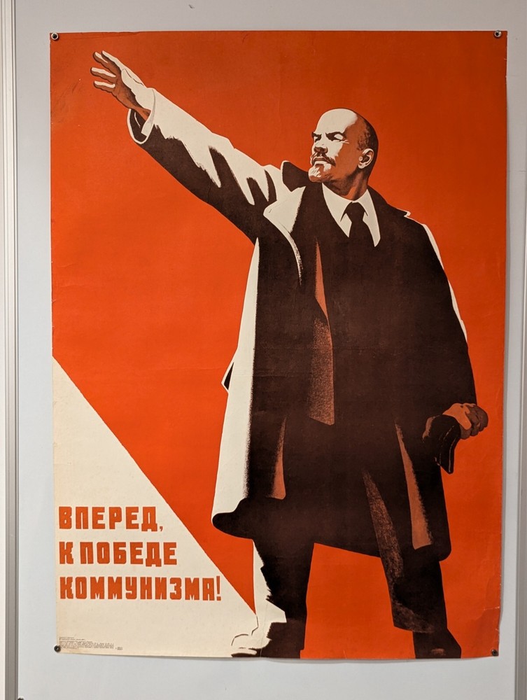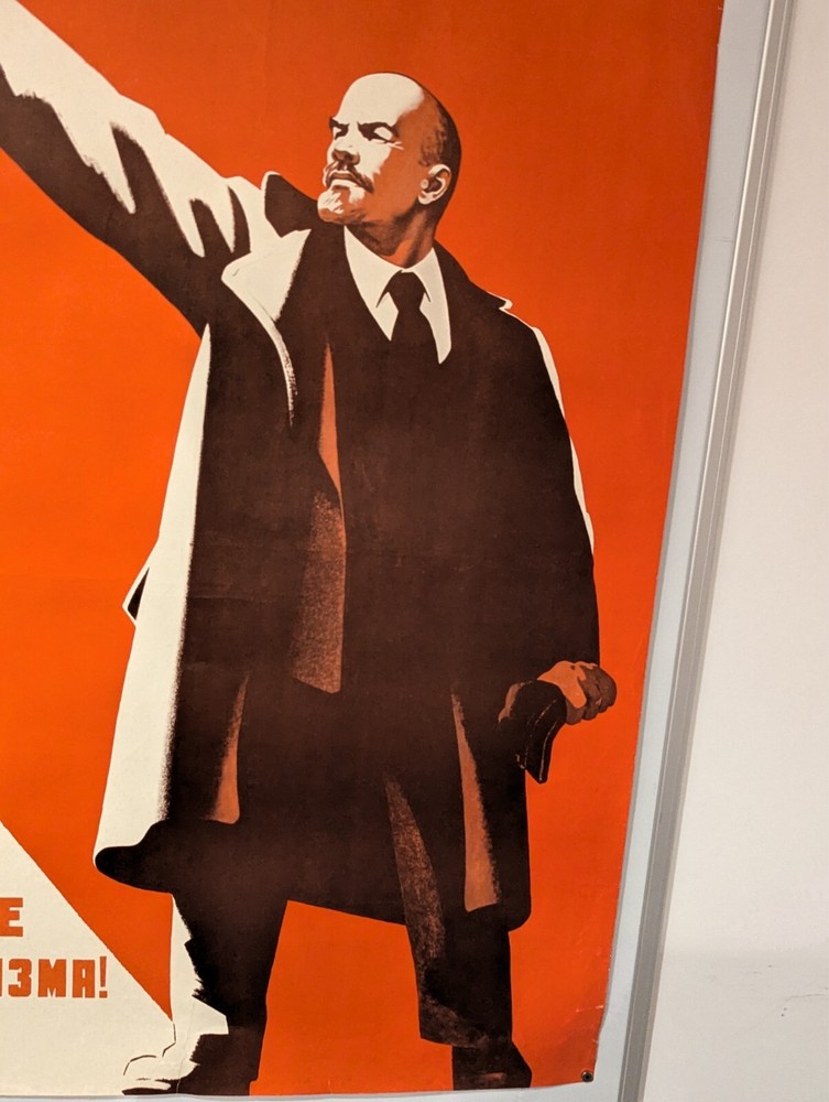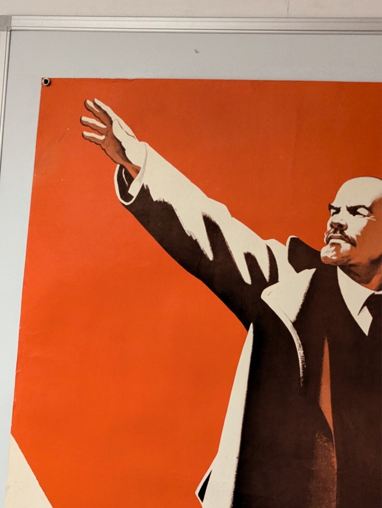 $ 120.921975 Soviet Komsomol Propaganda Poster with Lenin and Red Flag - Large Size