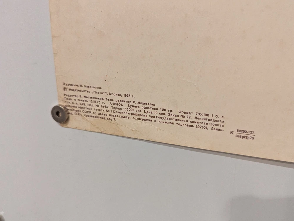 Great experience with this seller. The poster was reasonably priced given that it was an original and arrived promptly and in great condition- exactly as described in the listing. Had it framed and it looks great on the wall- Отлично!