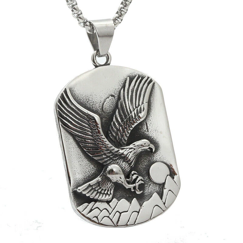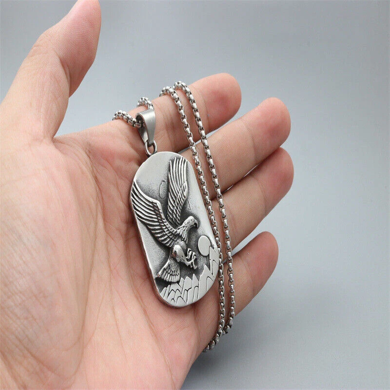 Brand: Cy trendy Material (Pendant): 316L Stainless Steel Material (Chain):316L Stainless Steel Chain length: 60cm Pendant Size: 52mm*34mm Total Weight: 34g We offer high quality rings by using GENUINE 316L Stainless Steel as material,The 316L stainless steel do not suffer corrosion,tarnish or rust when expose in wet enviroment, it is one of the best metal when choosing rust resistance rings and necklaces because of it's sufficiently reactive to protect itself from further attack by forming passive corrosion product layer Package include 1 x necklace