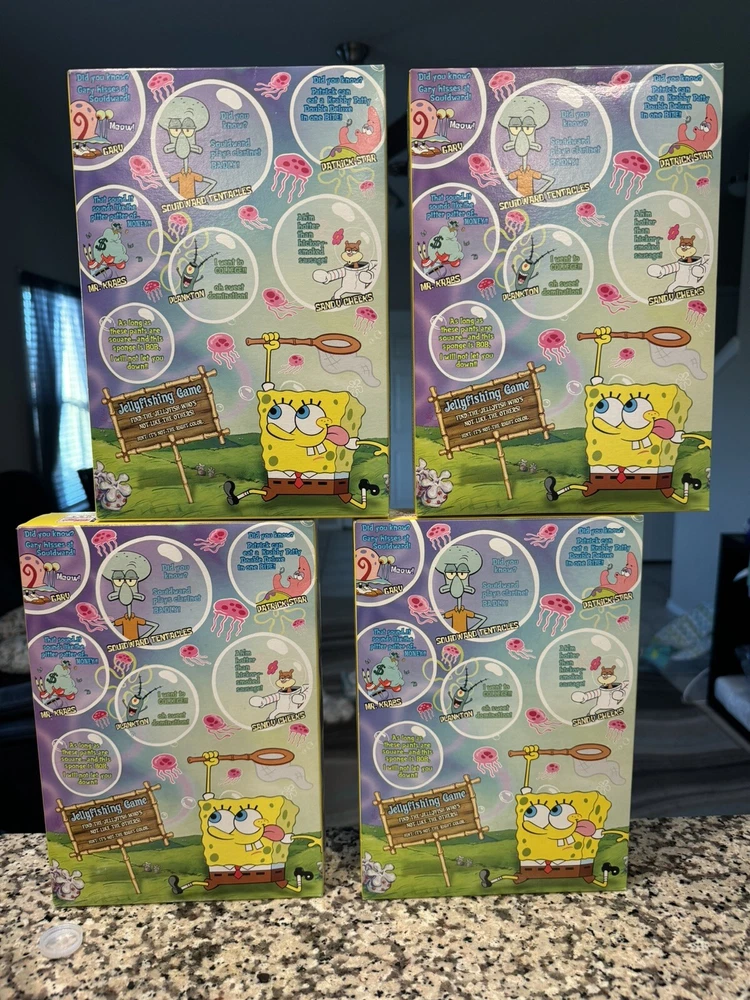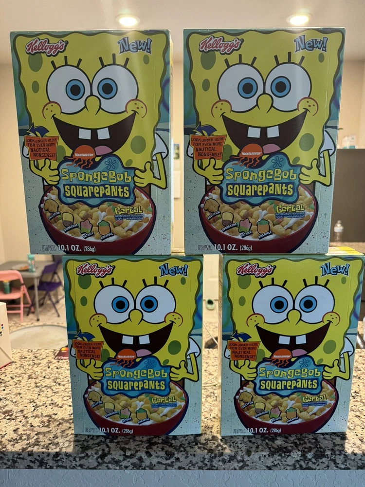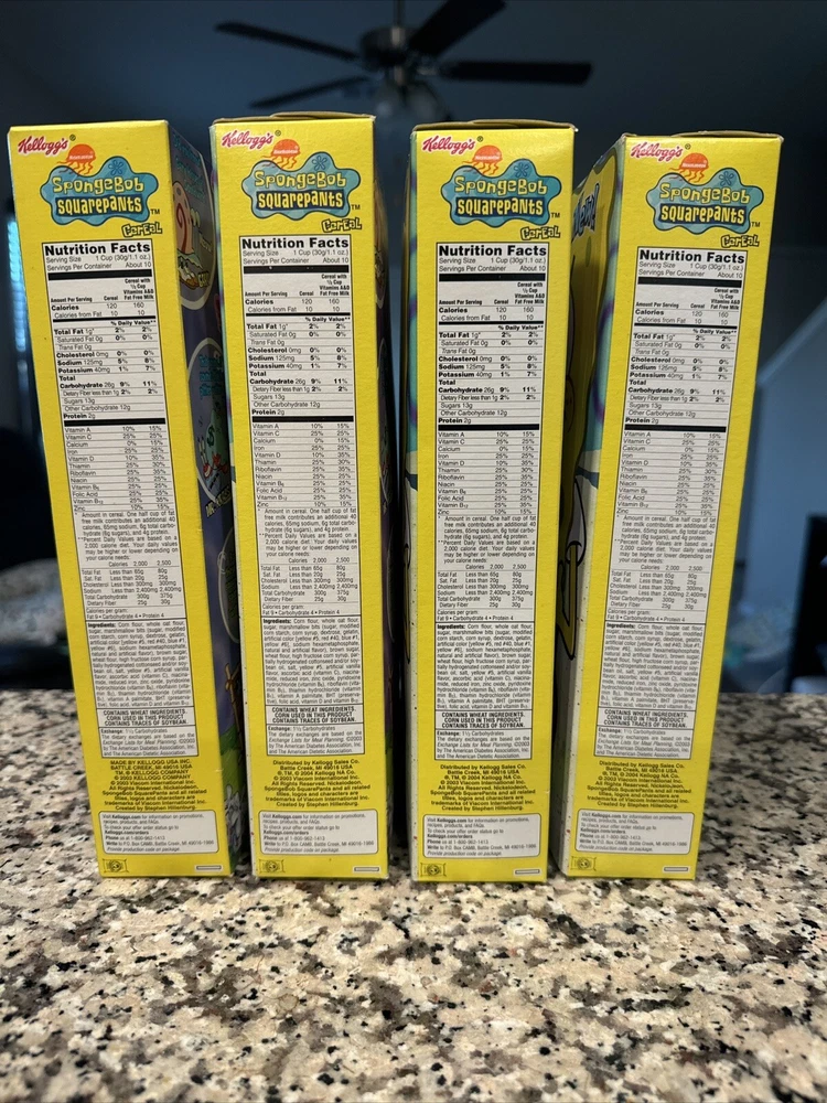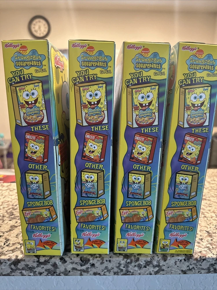 Like new and never opened For all the vintage collectors out there, this SpongeBob SquarePants cereal box from 2004/2005 is a must-have addition to your collection. The box is unopened and comes with the original cereal inside, making it a perfect item to display in your kitchen or living room. The vibrant colors and fun graphics on the box make it a great conversation starter and an excellent way to reminisce about the good old days. Whether you are a fan of SpongeBob SquarePants or just love collecting vintage items, this cereal box is a must-have.