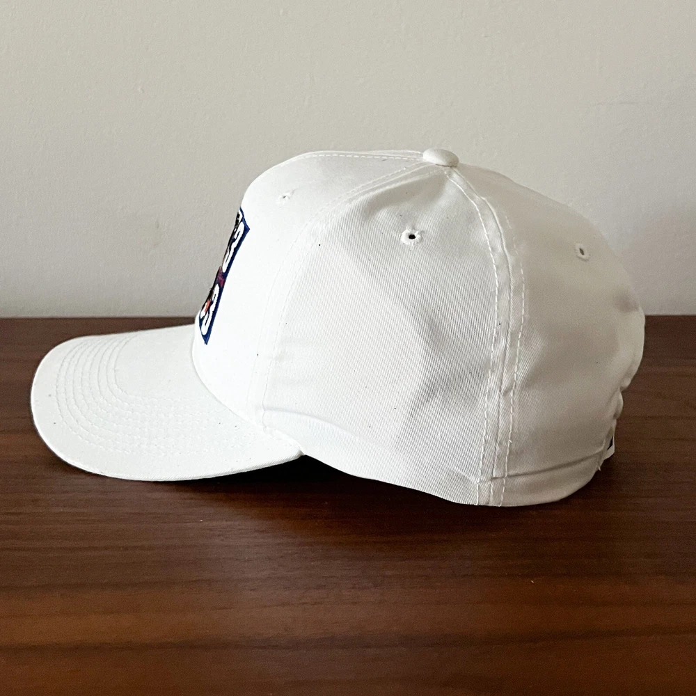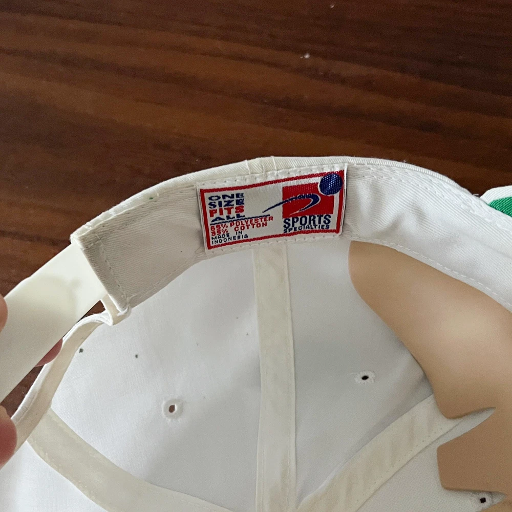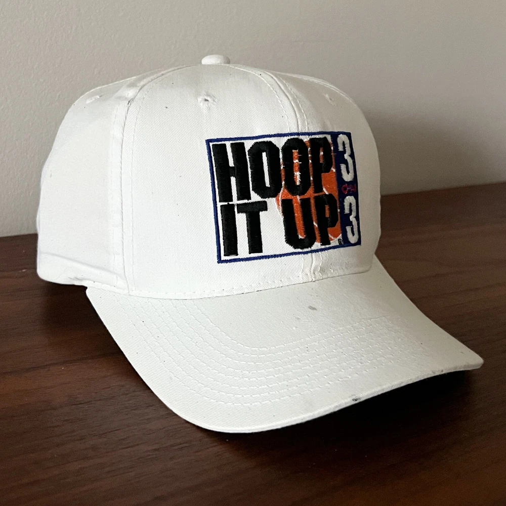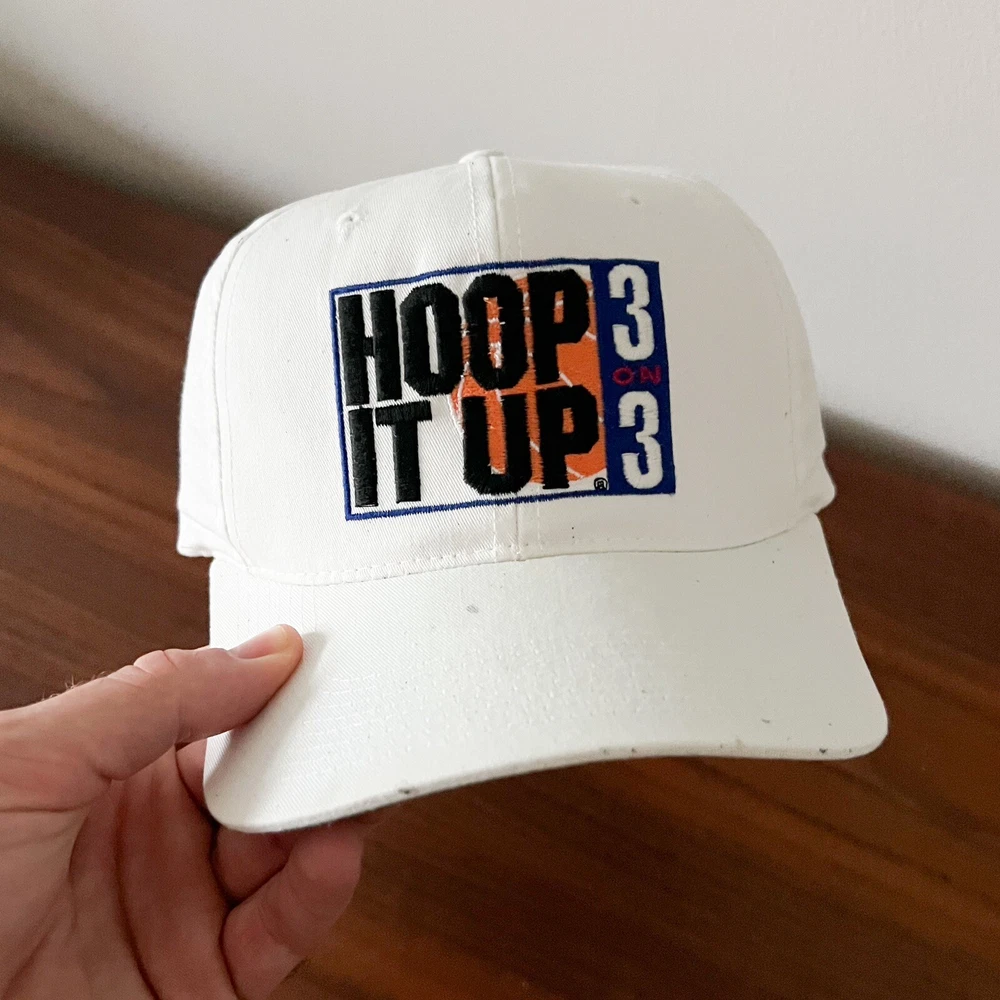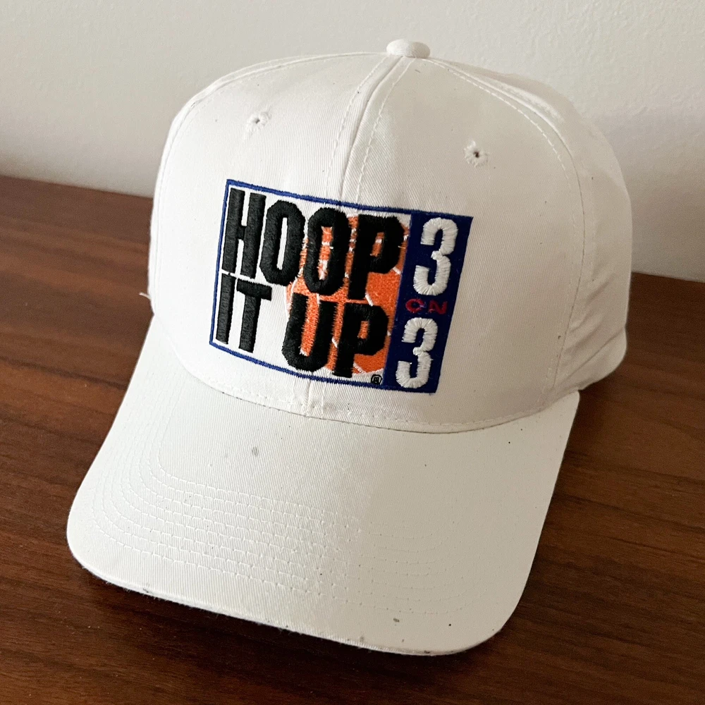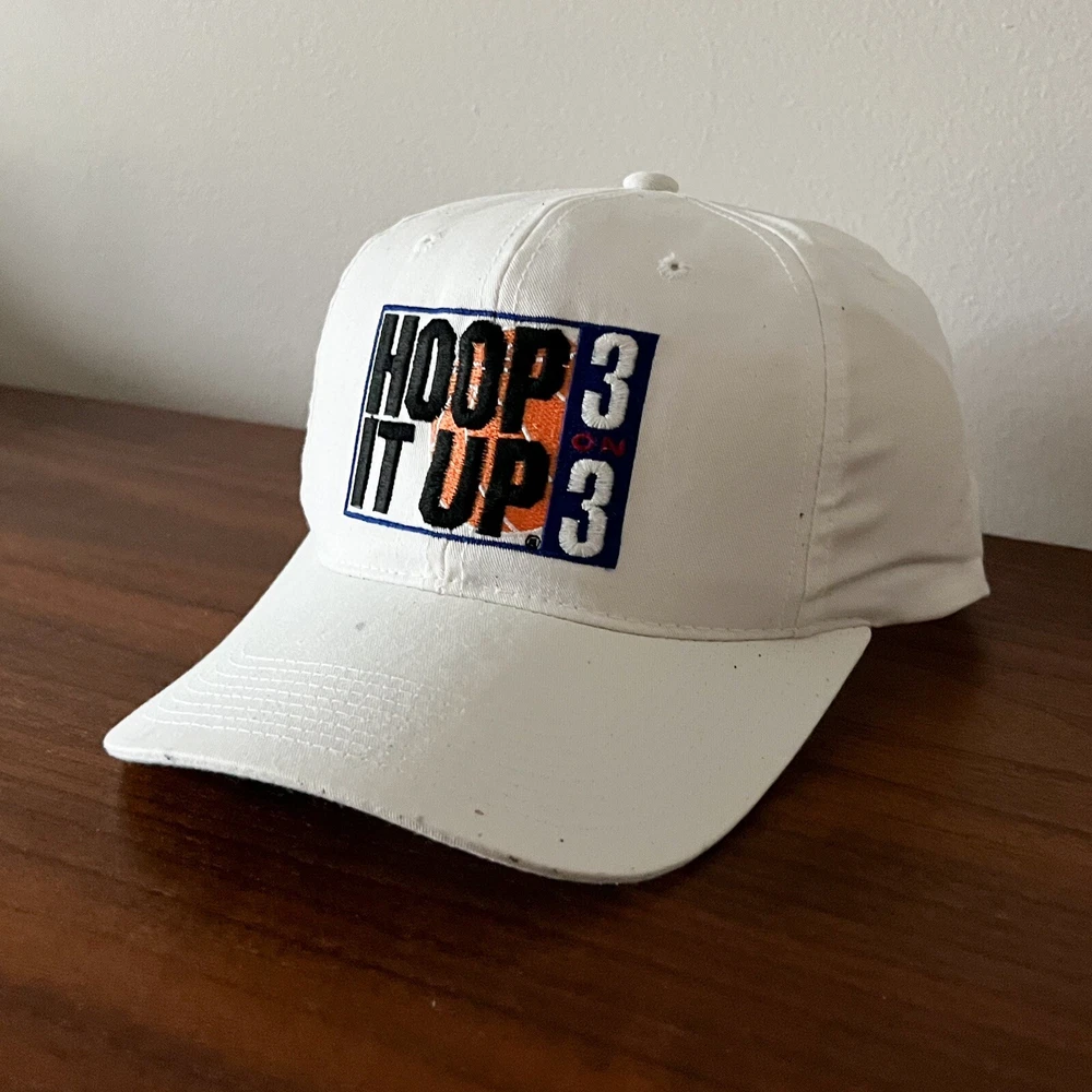 Show your love for basketball with this vintage Sports Specialties NBA SnapBack hat. The 90's Hoop It Up design is perfect for any fan of the sport. This cap is officially licensed by the National Basketball Association (NBA) and features the iconic NBA logo. It's a one size fits all design, perfect for men who want to show off their love of basketball. The white color of the hat complements the blue snapback closure, making it a stylish addition to any outfit. Made in Bangladesh, this hat is a must-have for any basketball fan's collection. Tag Size: One Size Condition: Hat has some paint splatters. Otherwise good condition All items are second hand, many being vintage and may have small imperfections. Anything major is noted.