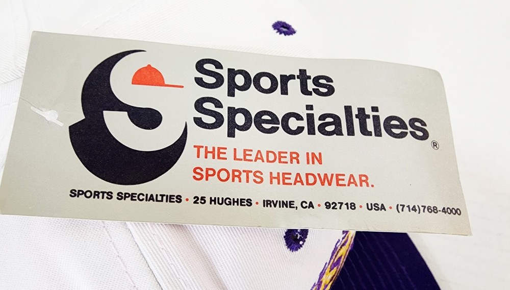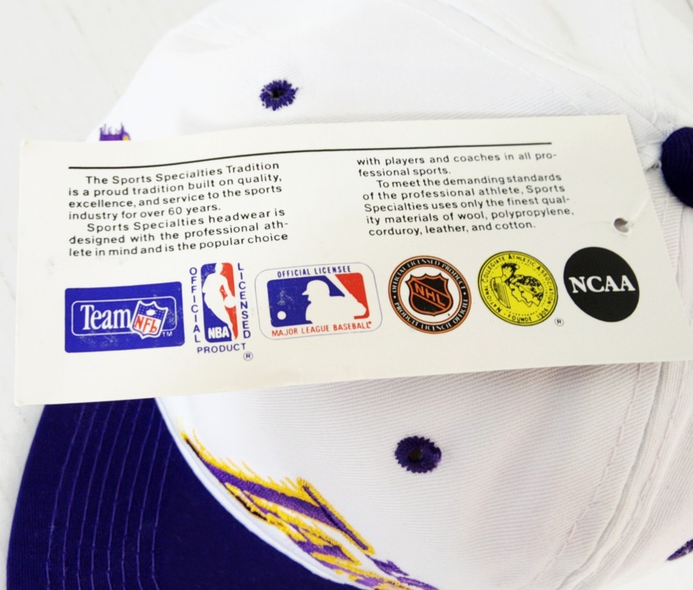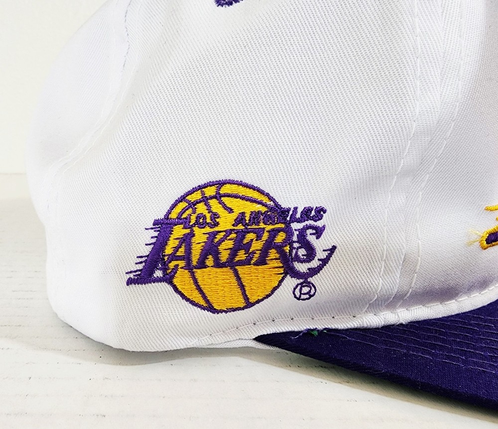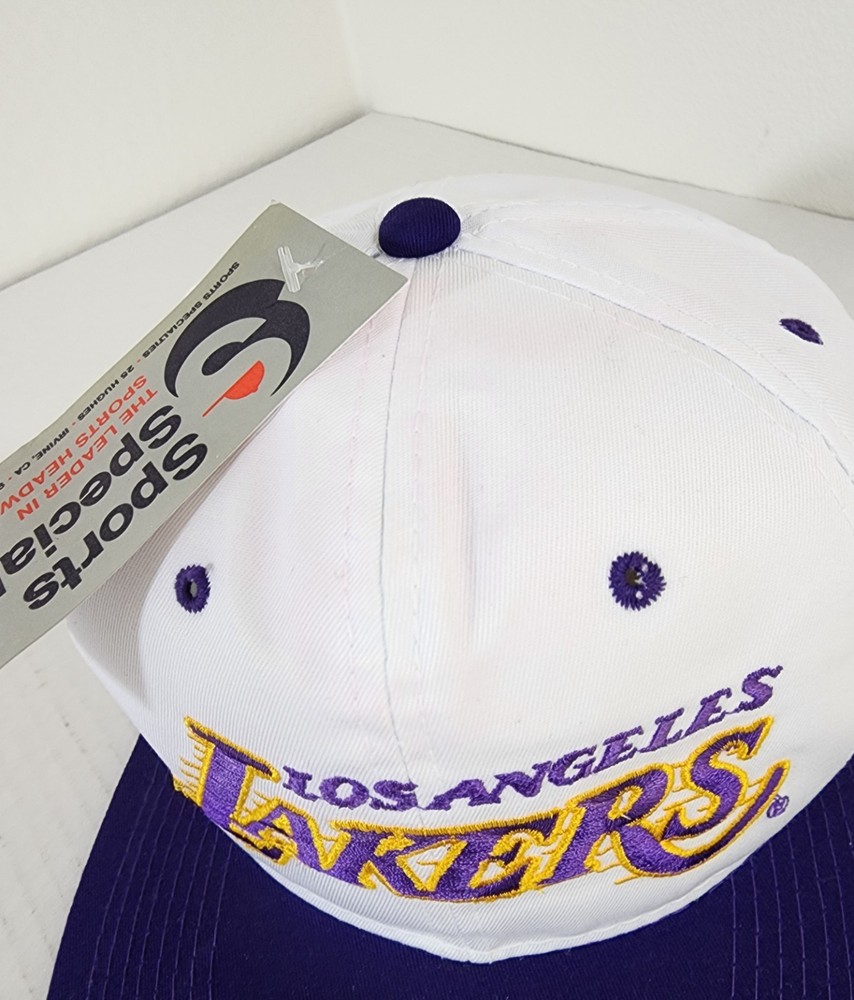 **Has some slight color transfer on top of hat. very light pink. Can see in front image. This officially licensed L.A. Lakers hat from Sport Specialties out of Irvine. This 90's snap-back hat is the perfect accessory for any basketball fan. Featuring the iconic Los Angeles Lakers logo and colors, this cap is designed for both men and women to wear during the regular NBA season. Made in Sri Lanka, this one-size-fits-all hat is a must-have for any Kobe Bryant or Lakers supporter looking to show their team pride. Whether you're heading to a game or just lounging at home, this hat is a stylish and comfortable way to represent the Los Angeles Lakers.