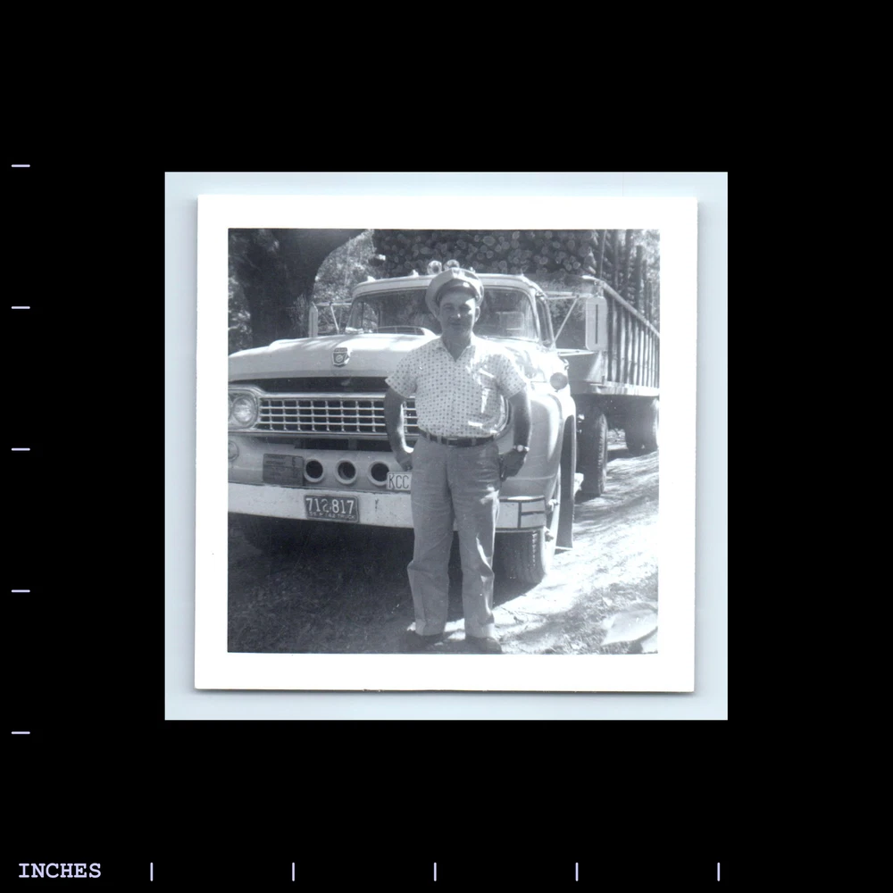 Vintage Square Photo MAN BY FORD LOGGING TRUCK