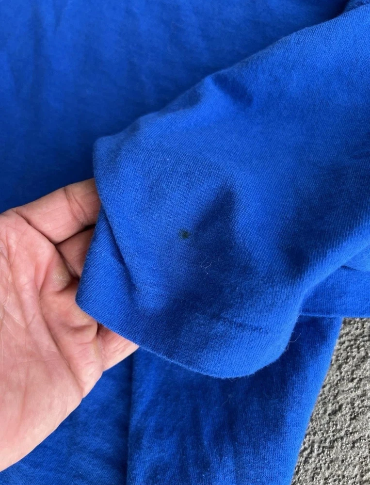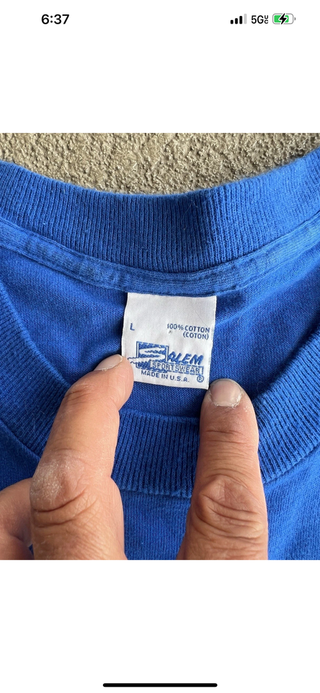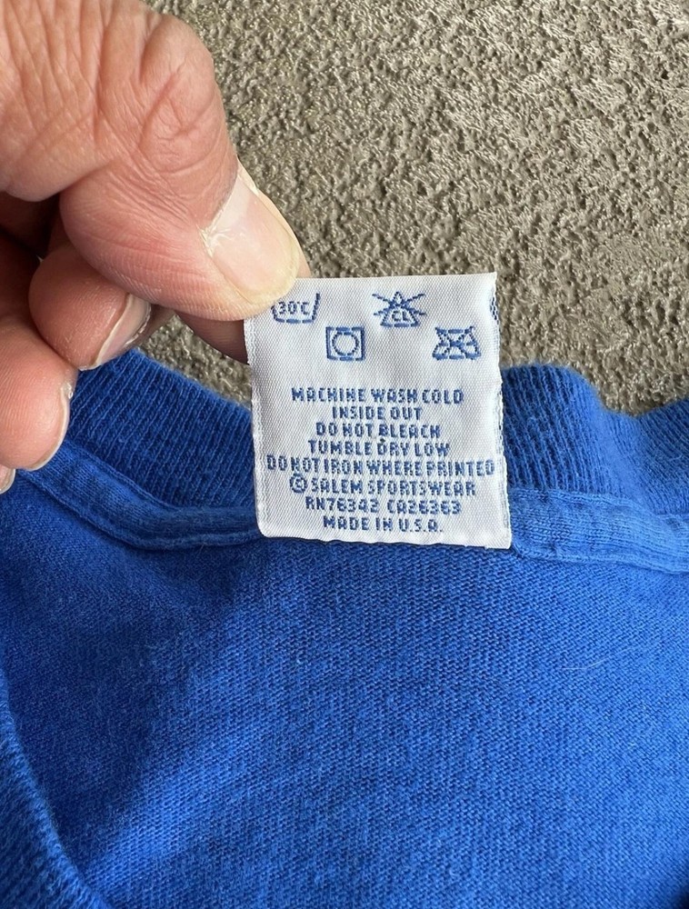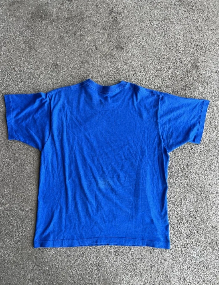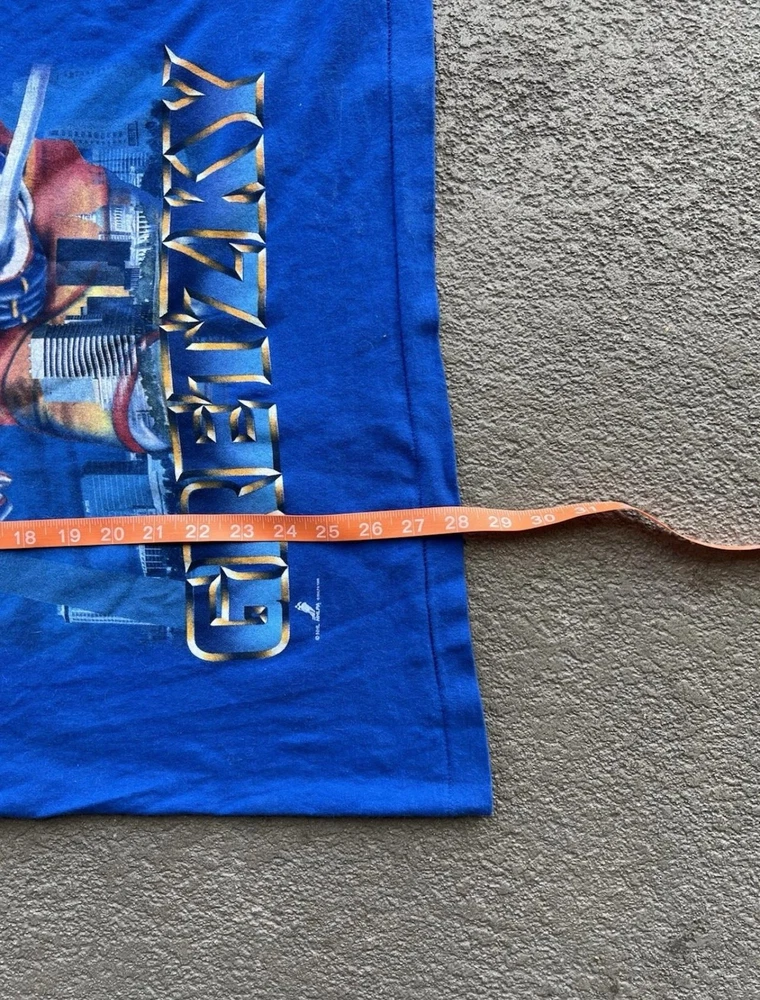 Vintage St Louis Blues Shirt Mens Large Blue NHL Hockey Wayne Gretzky Salem 90s Condition: Good vintage condition, some light wear consistent with age. Notable flaws include a small faint mark on the back and a small spot on one sleeve (see photos). Made in USA by Salem Sportswear. Tag size Large. 100% cotton. Features: Bold graphic of Wayne Gretzky in his St. Louis Blues uniform on the front, with cityscape background and 'Gretzky' in large font. St. Louis Blues logo printed on graphic. Officially licensed NHLPA graphic dated 1996. Measurements (approx.): - Pit to Pit: 23 inches - Length (top of collar to hem): 27 inches Color: Blue with multi-color print Short sleeve crew neck, single stitch hems, classic 90s boxy fit Era: 1990s, guaranteed original vintage Hard-to-find Wayne Gretzky St Louis Blues graphic, perfect for collectors and hockey fans