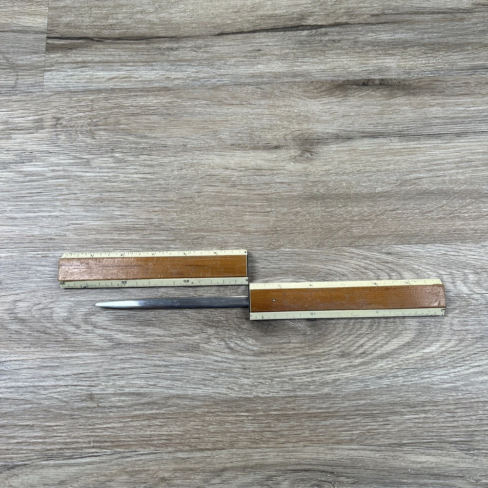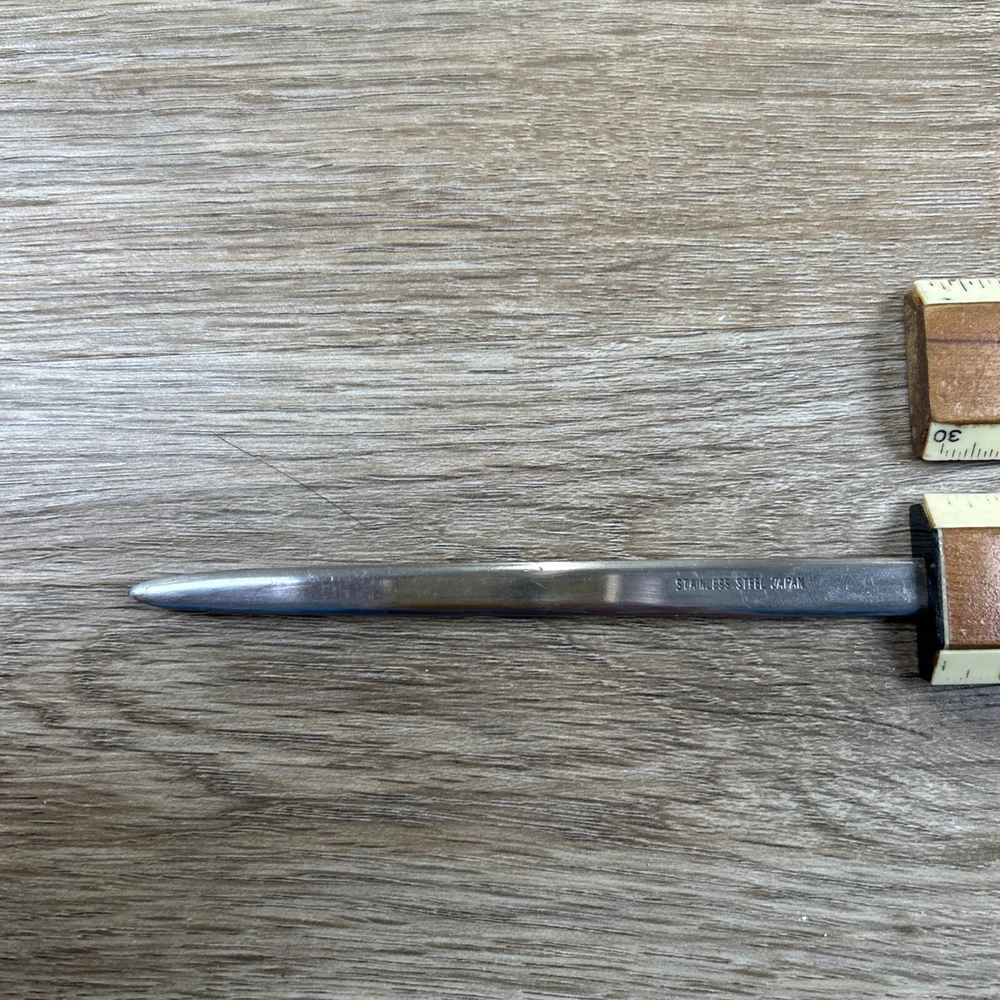Vintage Stainless Steel Letter Opener 12"/30cm Wooden Ruler Case Made In Japan