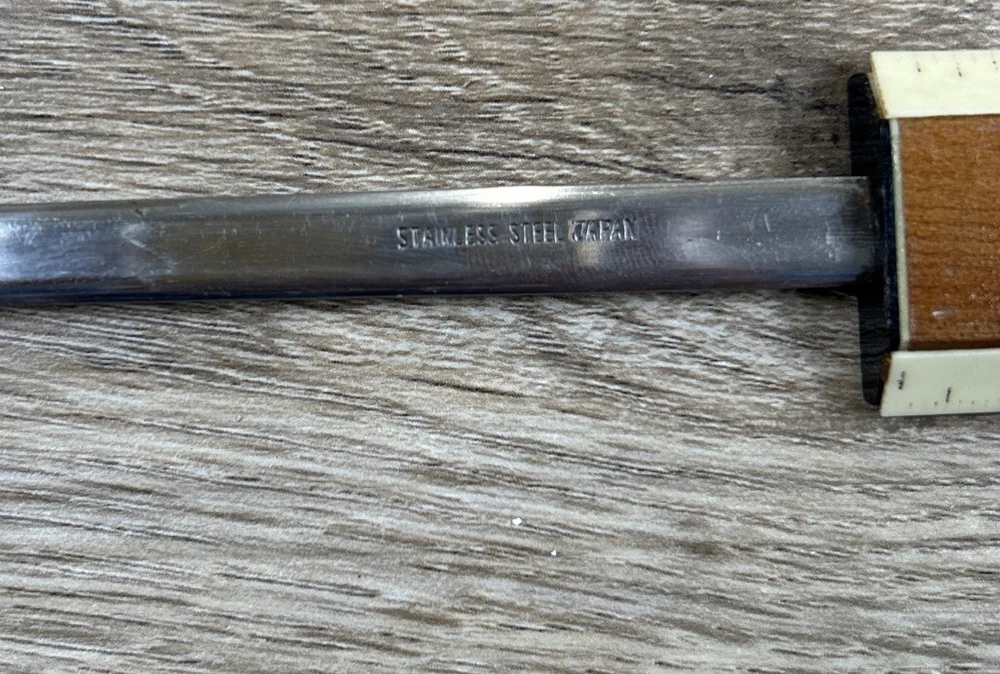 Vintage Japanese stainless steal letter opener/12” ruler box. Has some scuffs/scrapes/blemishes and some of the numbers are wearing off (see photos) but pretty good condition overall.