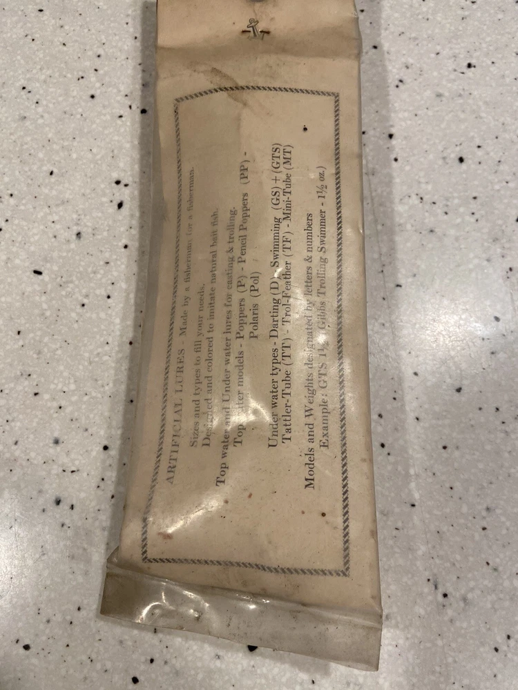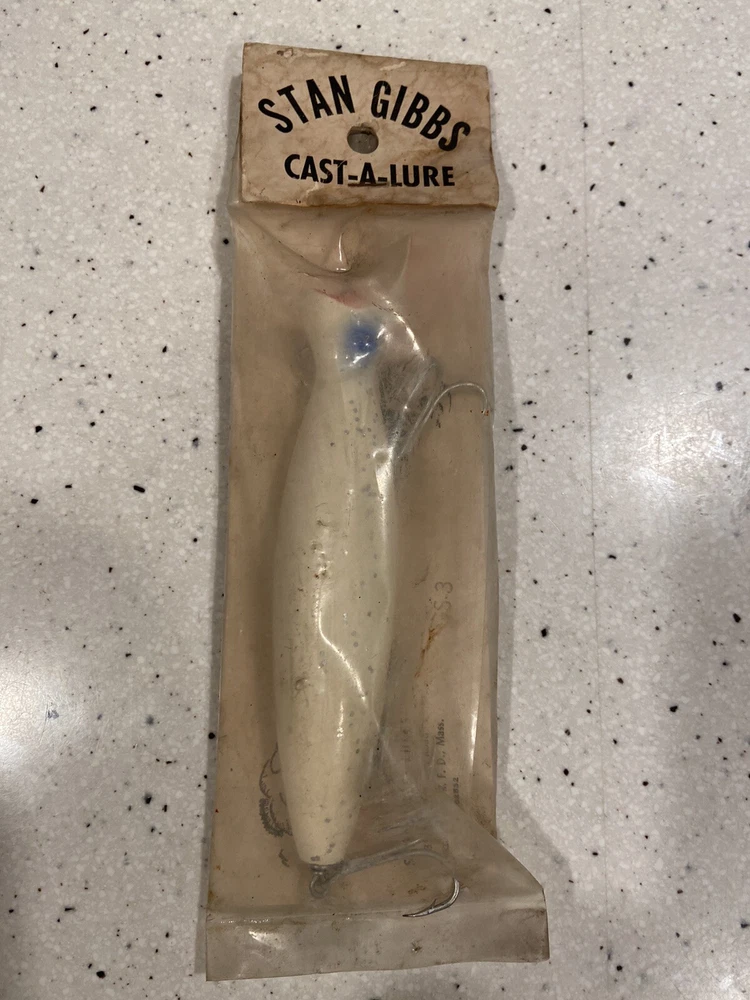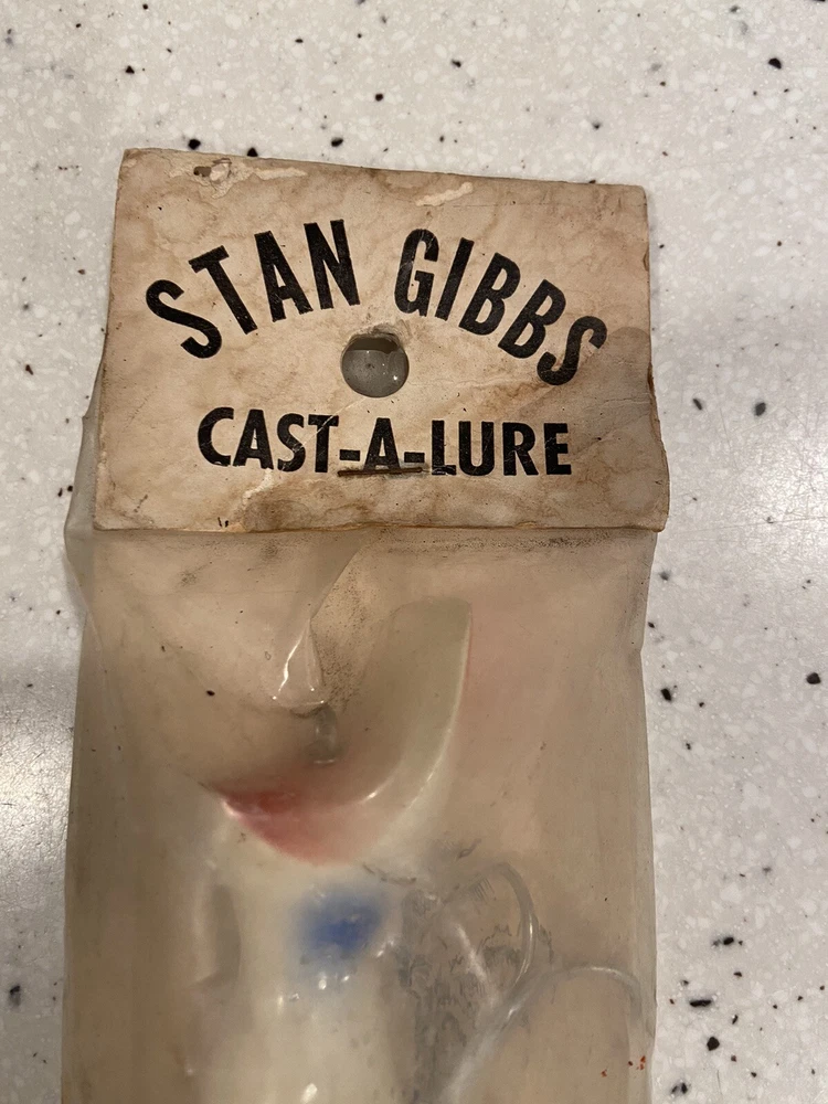 Vintage Stan Gibbs Saltwater Fishing Lure 3oz Casting Swimmer In Package package is a little faded and dirty look at photos