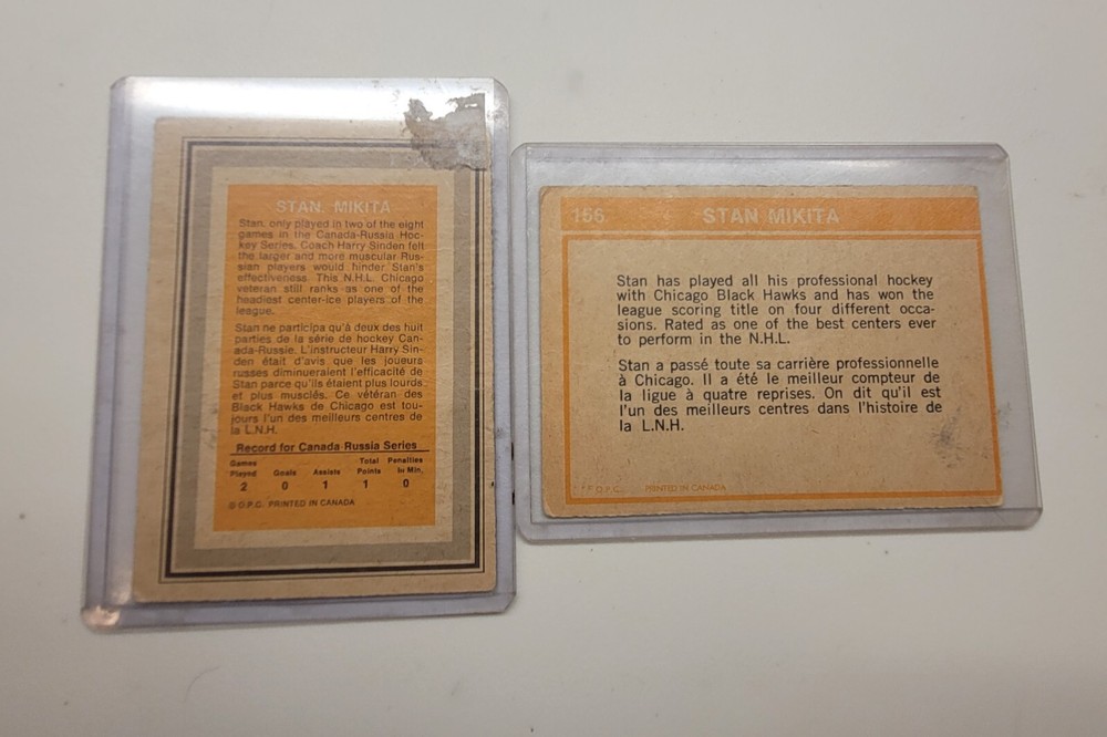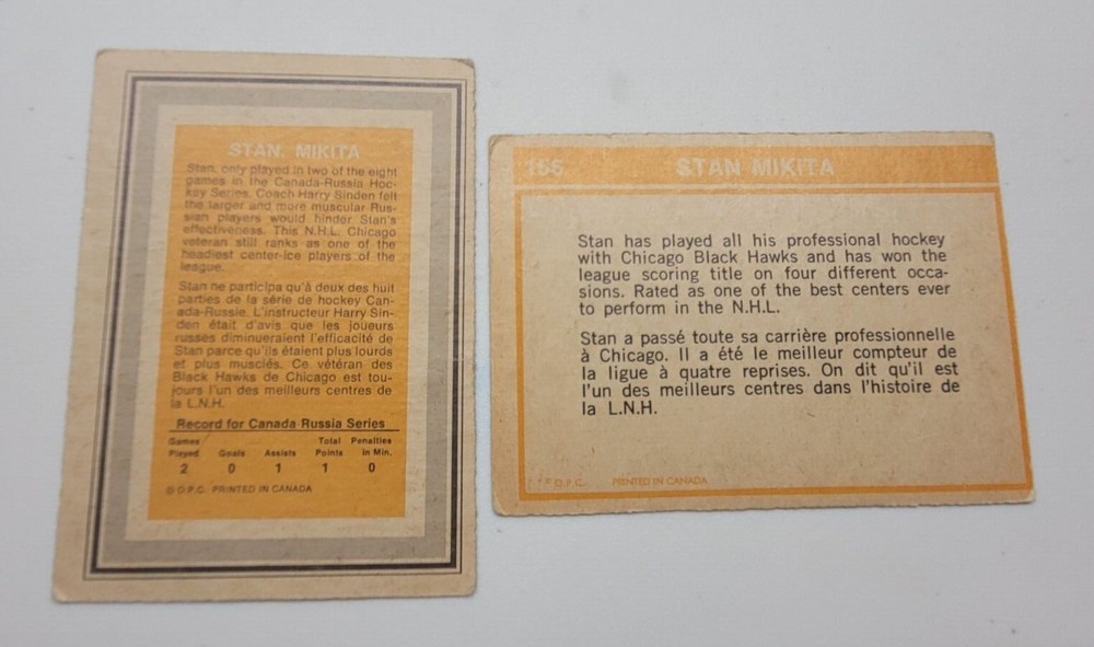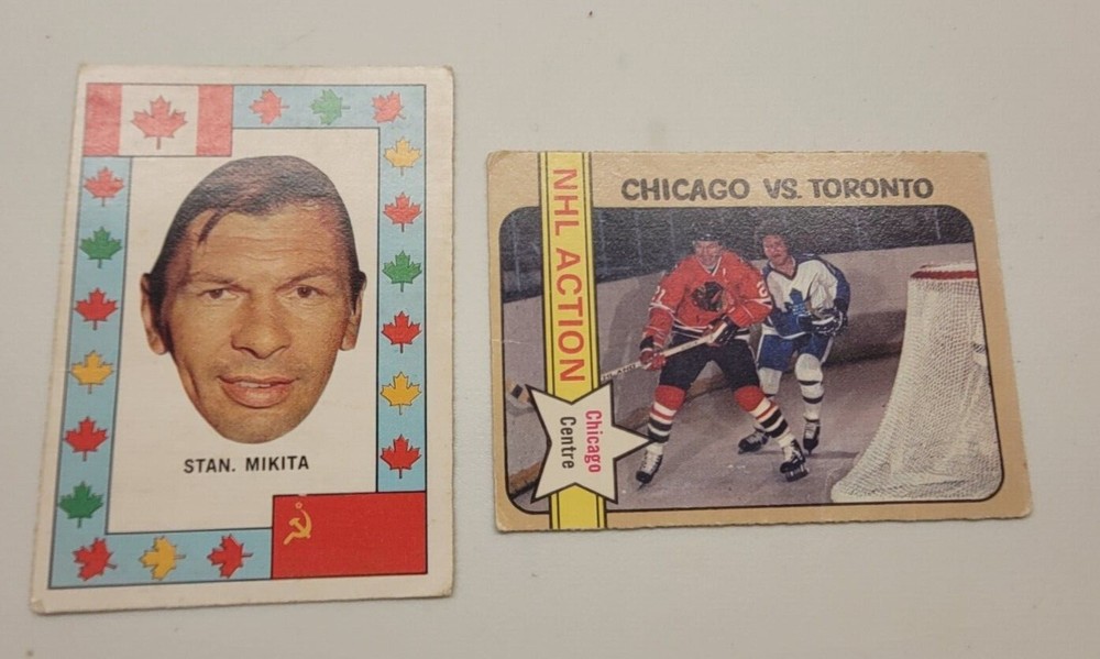 This listing features two Stan Mikita hockey cards from the 1972-73 season. The cards are categorized as sports trading cards and are in pretty good condition, with a condition type of 4000. As an ice hockey legend, Stan Mikita's cards are highly sought after by collectors and enthusiasts alike. This listing presents a great opportunity to add two of his cards to your collection. Don't miss out on this chance to own a piece of hockey history!