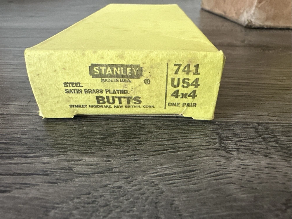 Country/Region of Manufacture:United StatesType:ButtSuitable For:DoorFinish:Polished BrassModel:741Material:Steel, Brass PlatedBrand:StanleyColor:BrassSeller Notes:“new with some bonus dust”
