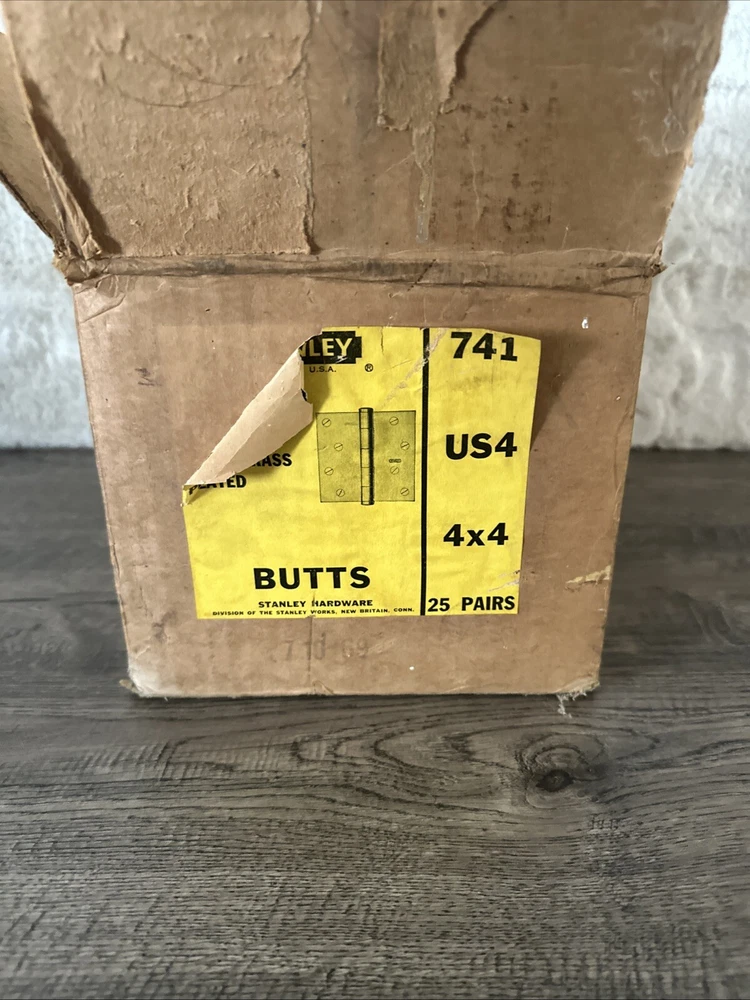 Vintage Stanley 4x4 Steel Satin Brass Plated Door Hinges Butts 741 25 Pairs USA