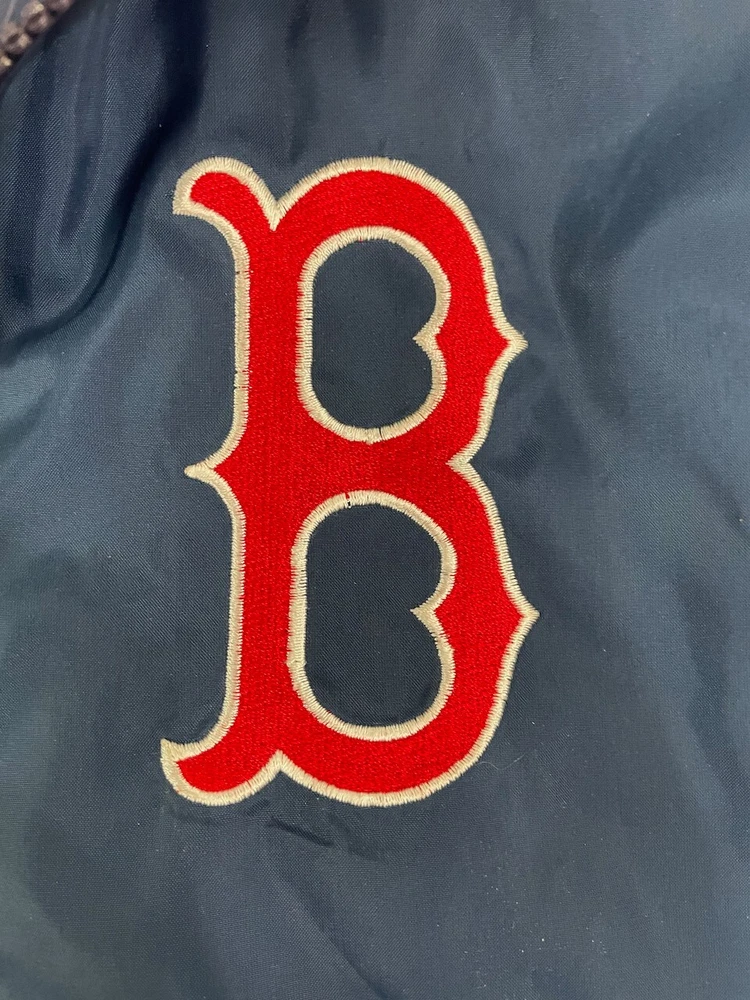 This is an excellent Starter Genuine Merchandise Boston Red Sox jacket. Lightweight windbreaker style in red, white, and blue. Embroidered logos front and back. Full zip. Excellent vintage condition. Very minor wear. Zipper works great. Always happy to combine shipping when possible. Thanks for looking!