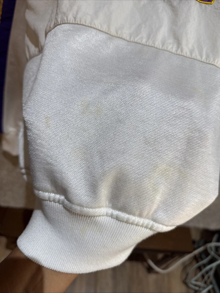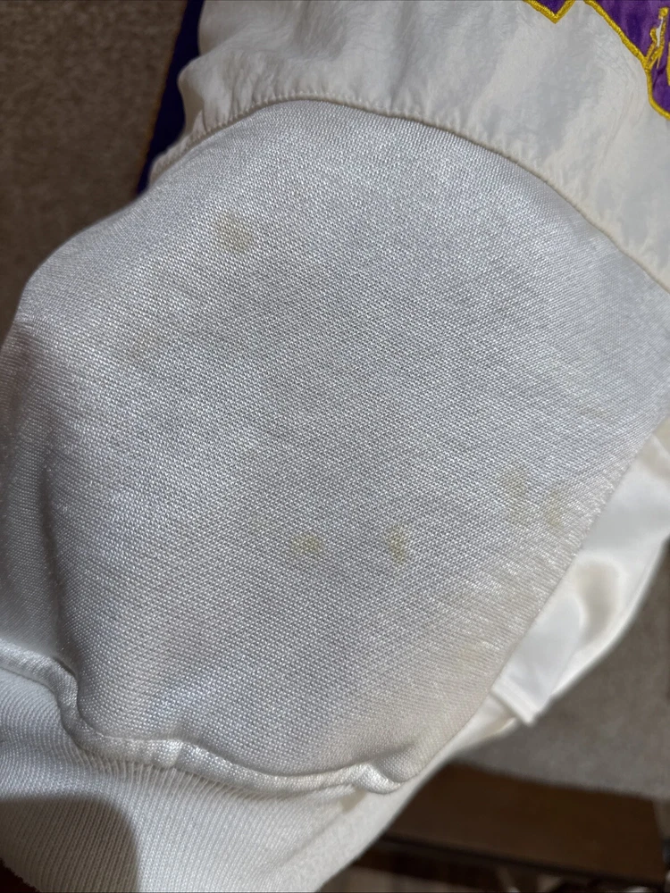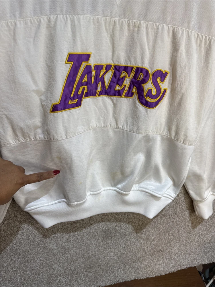 Officially Licensed:YesTeam:Los Angeles LakersColor:WhiteSize:SBrand:StarterCountry/Region of Manufacture:TaiwanSeller Notes:“Faint stains shown in the photos.”Sport:BasketballProduct:SweatshirtLeague:National Basketball Association (NBA)Gender:MenPre & Post Season:Regular Season