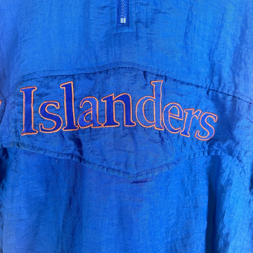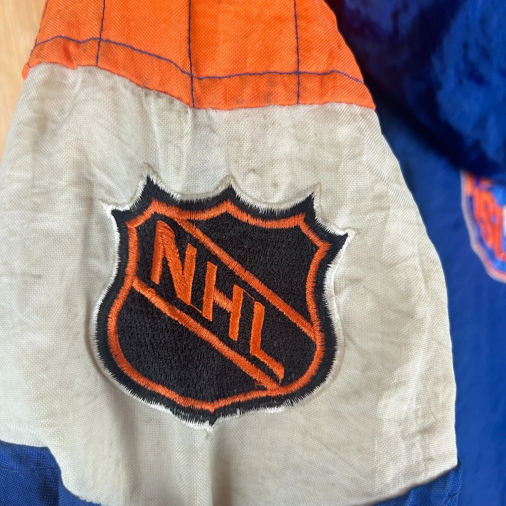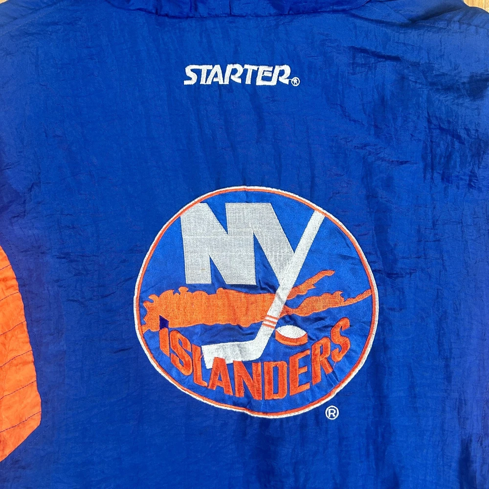 Show your love for the New York Islanders with this vintage Starter NHL puffer jacket hoodie. This blue jacket is perfect for any hockey fan, especially those who are looking for a stylish and comfortable piece of clothing. It features the team's logo on the front and is officially licensed by the National Hockey League (NHL), making it a must-have for any true fan. This jacket is made for men and comes in size small. It is perfect for all-star games and other special events, and is a great way to show your support for your favorite team. The jacket is made in Korea, Republic of and is of high quality. Get your hands on this vintage Starter NHL New York Islanders puffer jacket hoodie today and show your love for the team in style! SKU: 160019