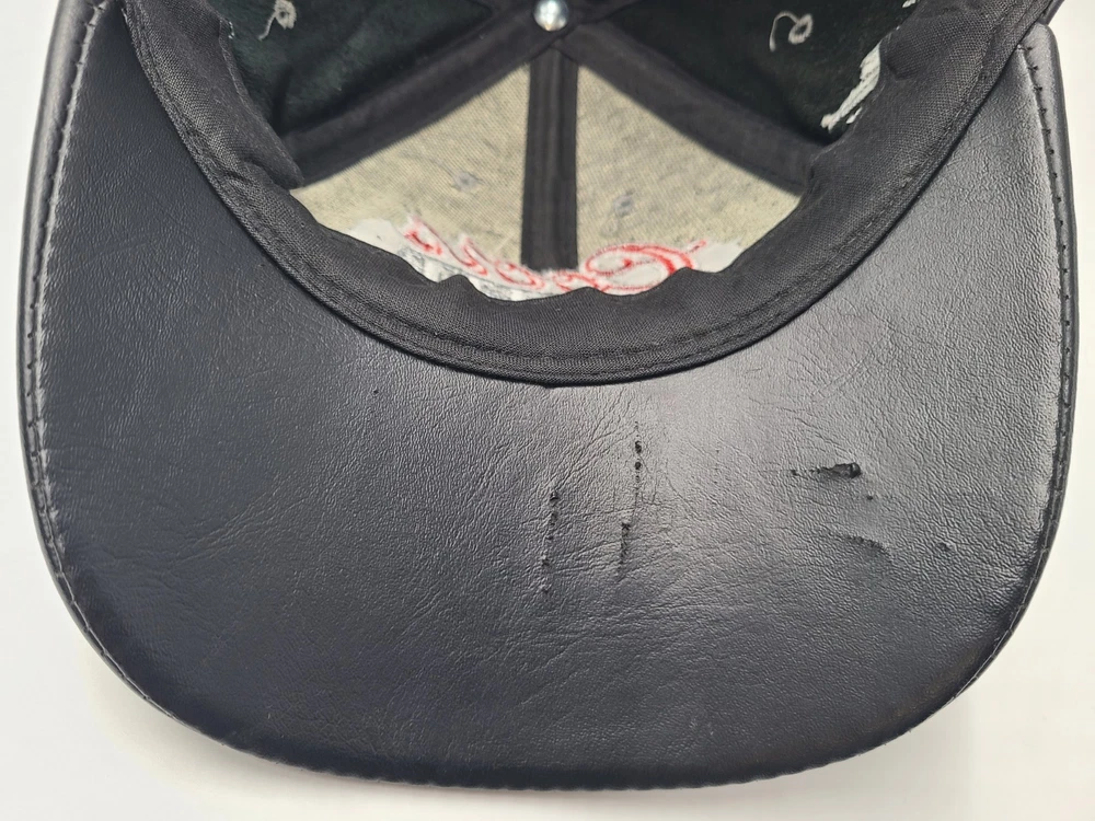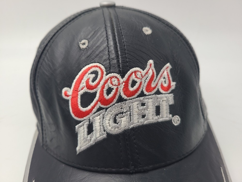 The tag says one size fits all, but it seems best suited for smaller sized heads. Also has some tears on the brim and underneath the brim as seen in photos. Vintage Sterling Marlin #40 Coors Light Leather Adjustable (Fits Small) Hat Cap. EACH ADDITIONAL HAT PURCHASED IS ONLY $1 ADDED SHIPPING!
