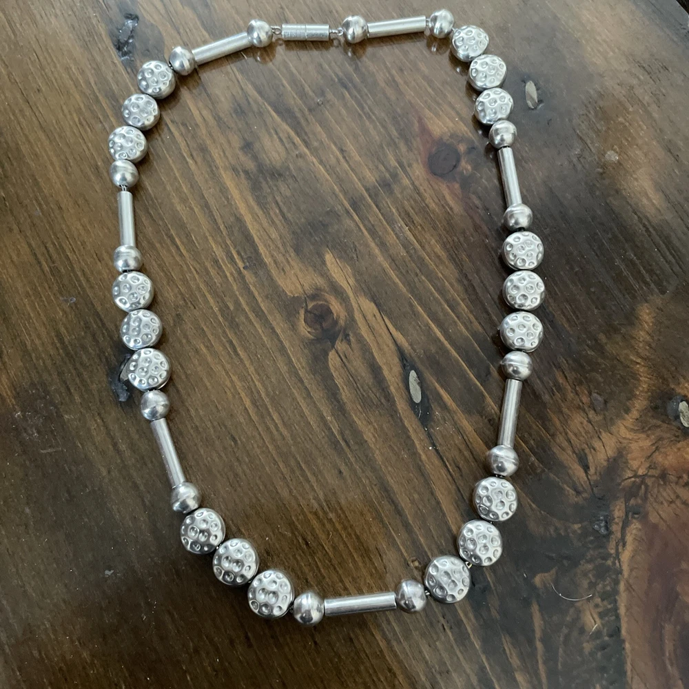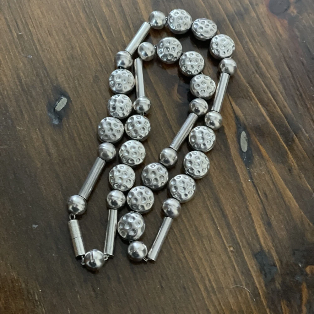 Vintage Sterling Silver 925 Beaded Chain Dimpled Cylinder unisex Necklace Y2K. Condition is Pre-owned. Shipped with USPS Ground Advantage.