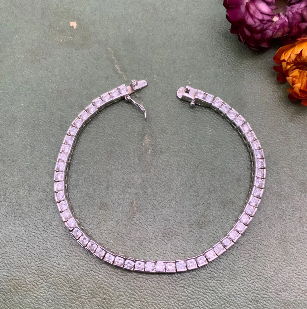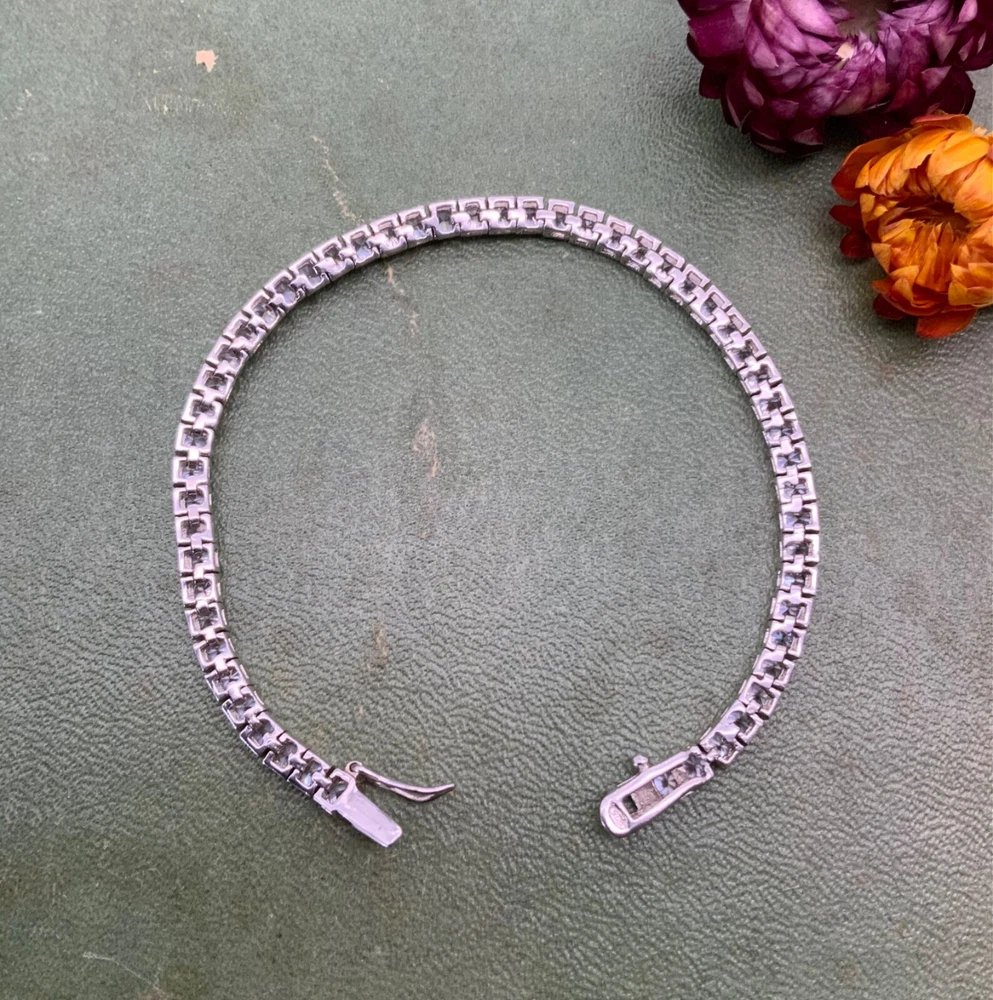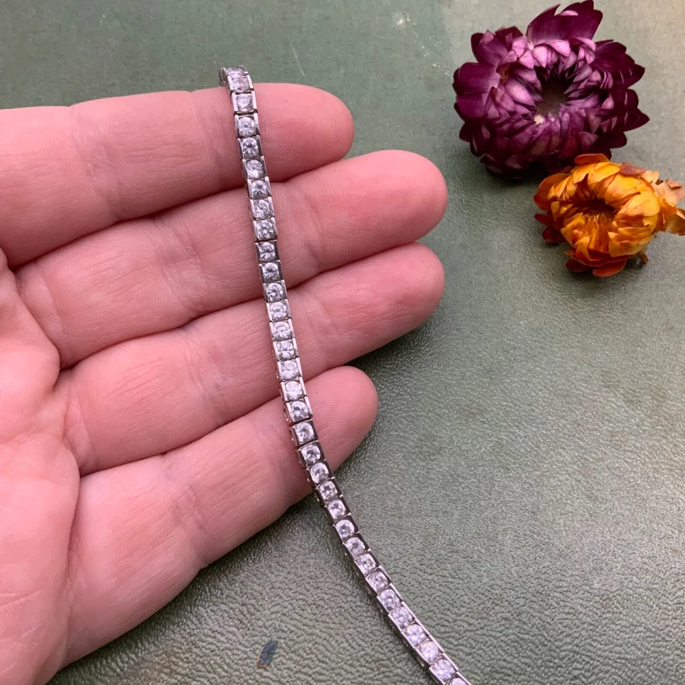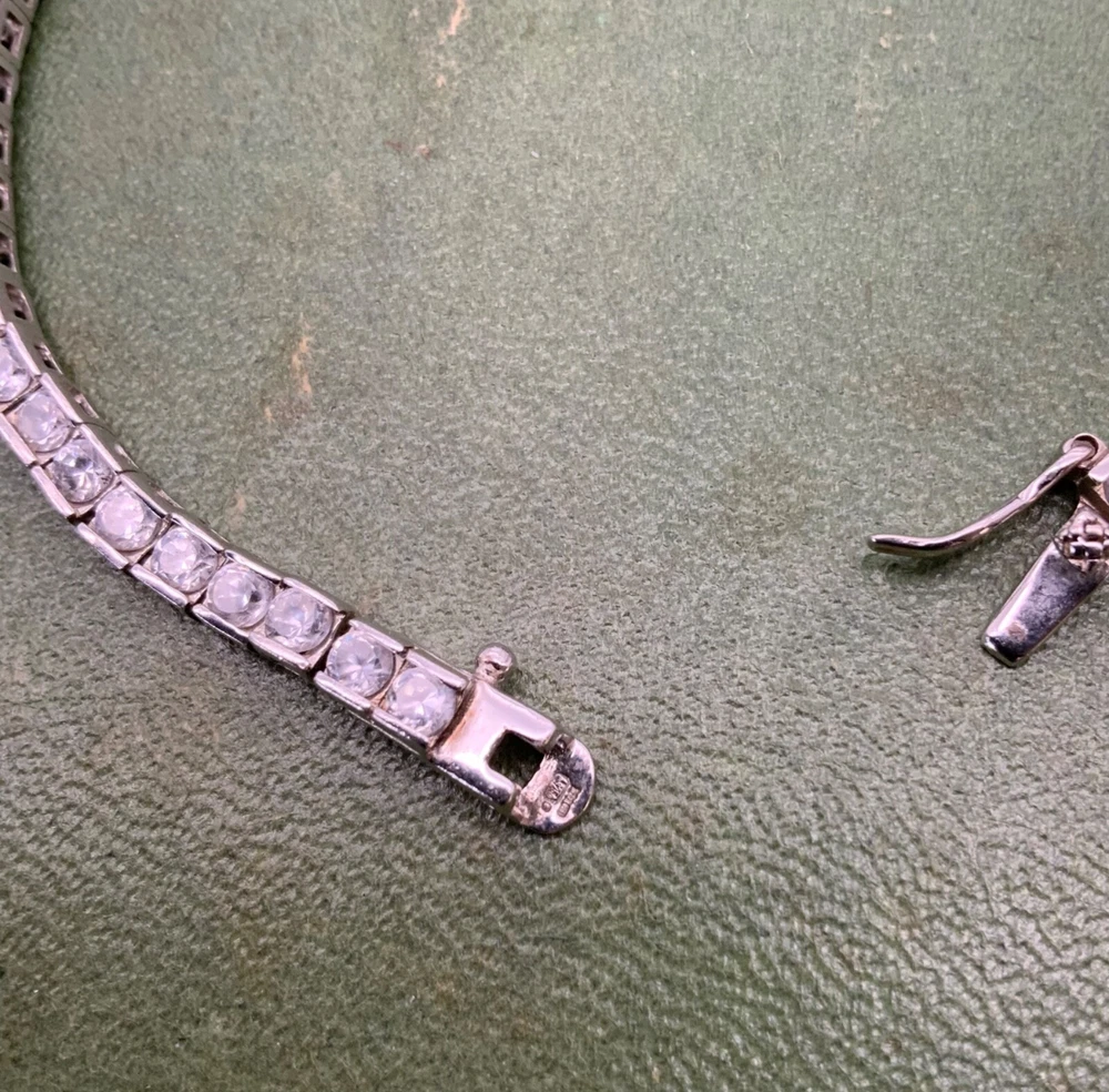 Beautiful vintage Sterling Silver with crystal Cubic Zirconia stones , very sparkly ! A well made piece of jewellery with full assay hallmarks, would make the perfect gift . Very good condition hallmarked 925 and tested Sterling Silver , please see all photos. Measures approximately Bracelet length 19cm / 7.5 inches Link width 4mm Weight 11.66g Any questions or if you would like more photos, please message me I’m happy to reply. This bracelet will be well wrapped and sent using Royal Mail 24 hour tracked. If you pay before 12pm I will post same working day. International buyers welcome shipping will be eBay GSP.