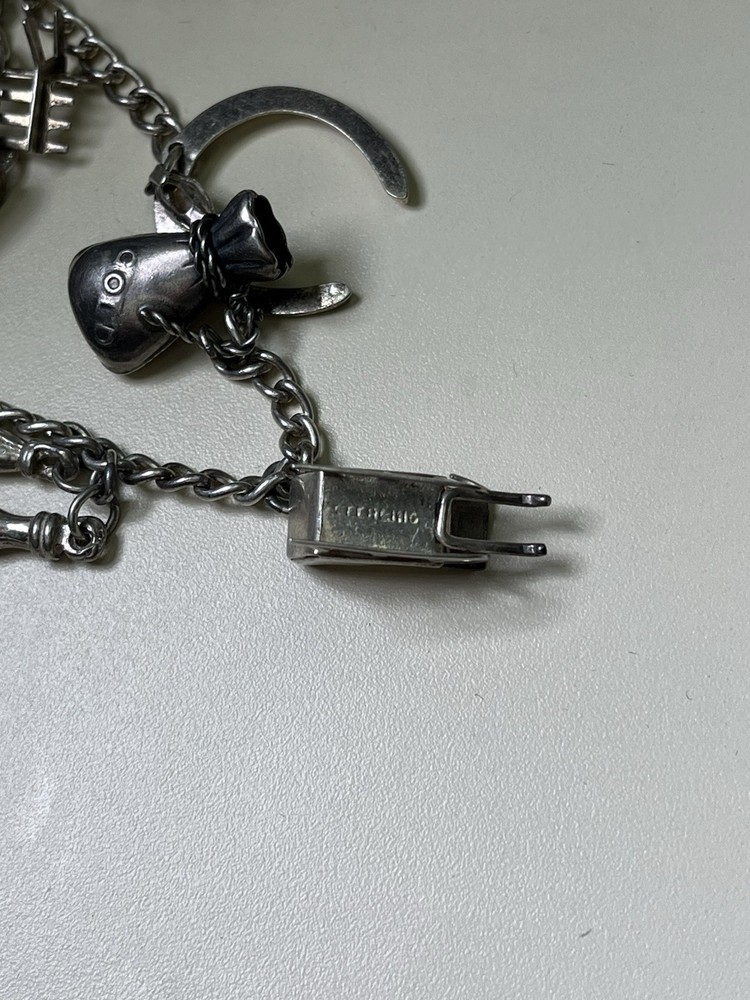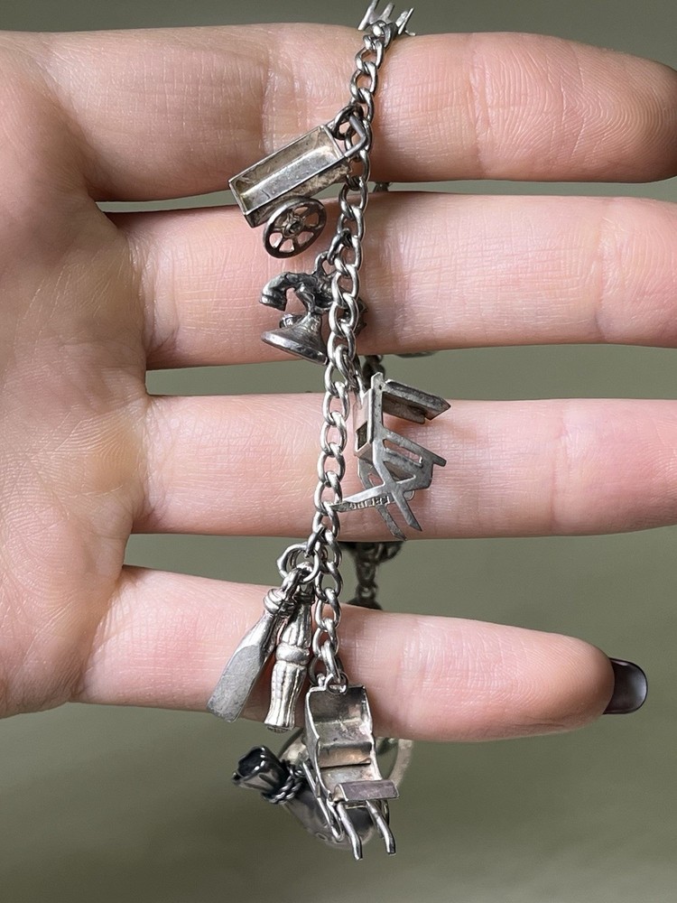 Vintage Sterling Silver Chain Bracelet & Various Charms Length: 7.5 inches Weight: 30.1 grams Width: 3.3 mm 13 Various Charms Hallmarked Sterling In Great Condition! Please check pictures as they are part of the description! No offers please, Thank you for understanding!