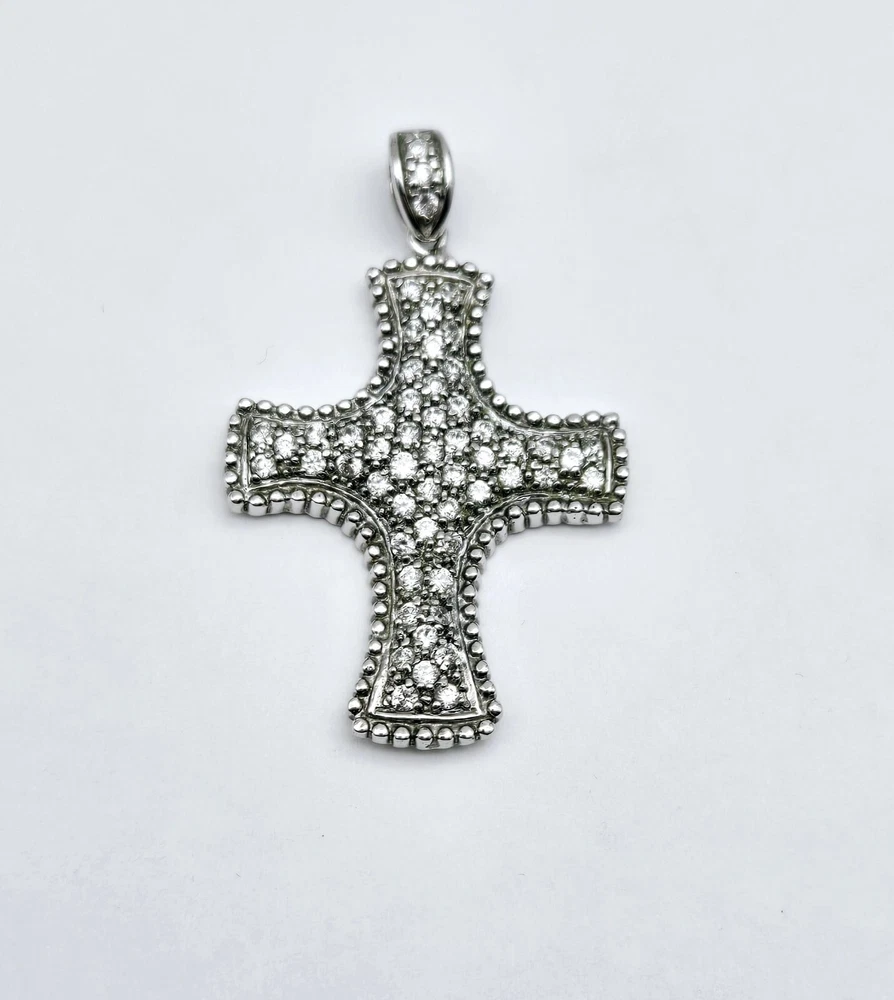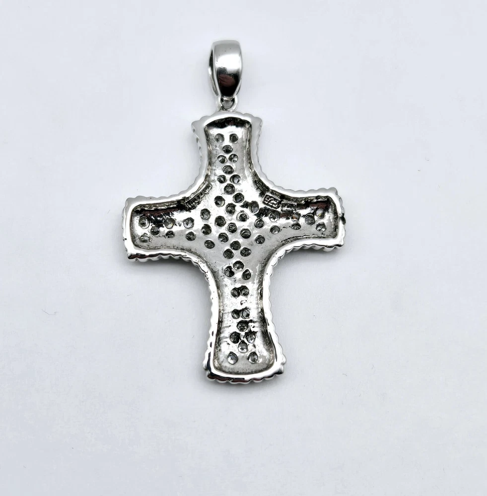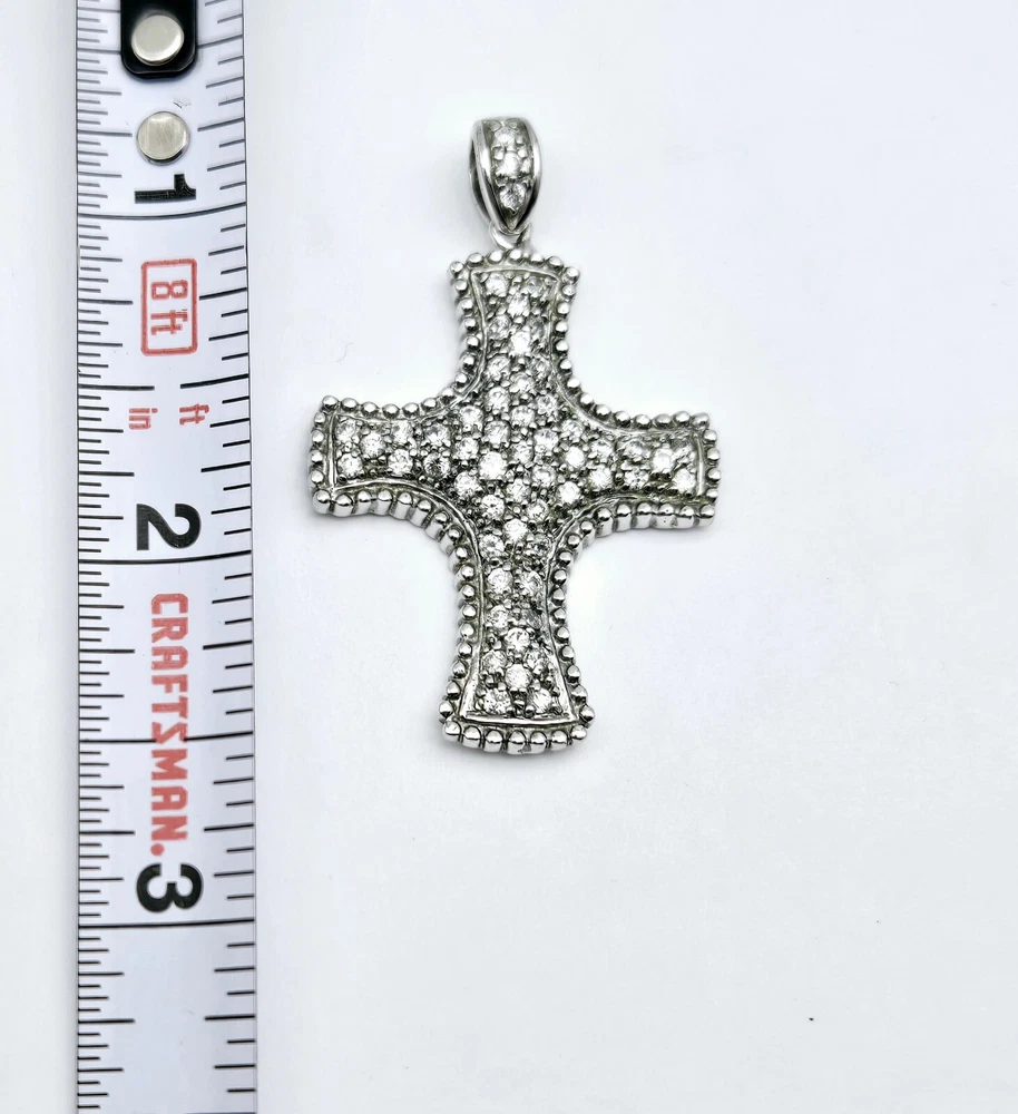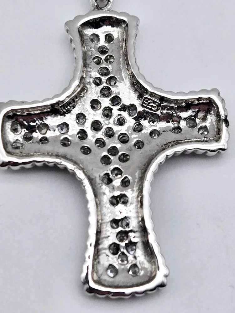 Vintage Sterling Silver Clear Gemstone Religious CROSS Drop Pendant - 8.2g
