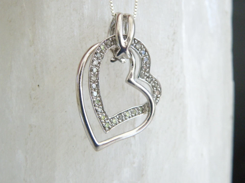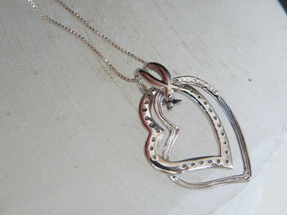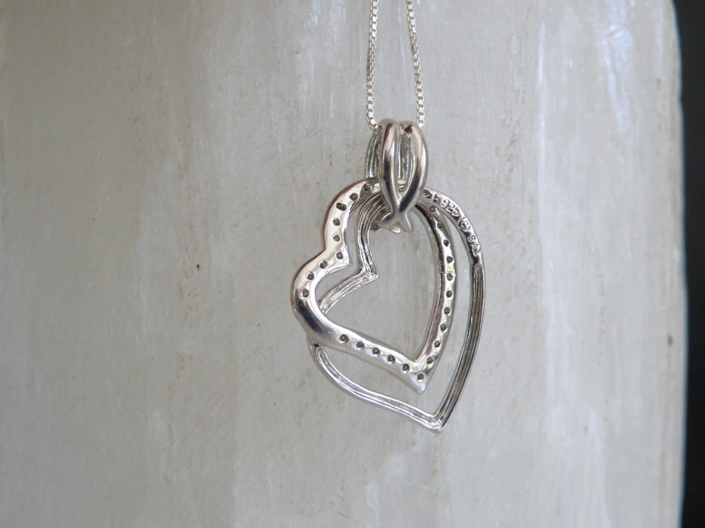 Absolutely stunning! The delicate double hearts catch the light beautifully, and the tiny diamonds add just the right sparkle. The 18" chain sits perfectly, making it easy to layer or wear alone. Love that it’s genuine sterling silver—lightweight yet durable. The craftsmanship is flawless, and the vintage touch gives it timeless elegance. A must-have for anyone who loves dainty, meaningful jewelry. So happy with this purchase—it’s even prettier in person!