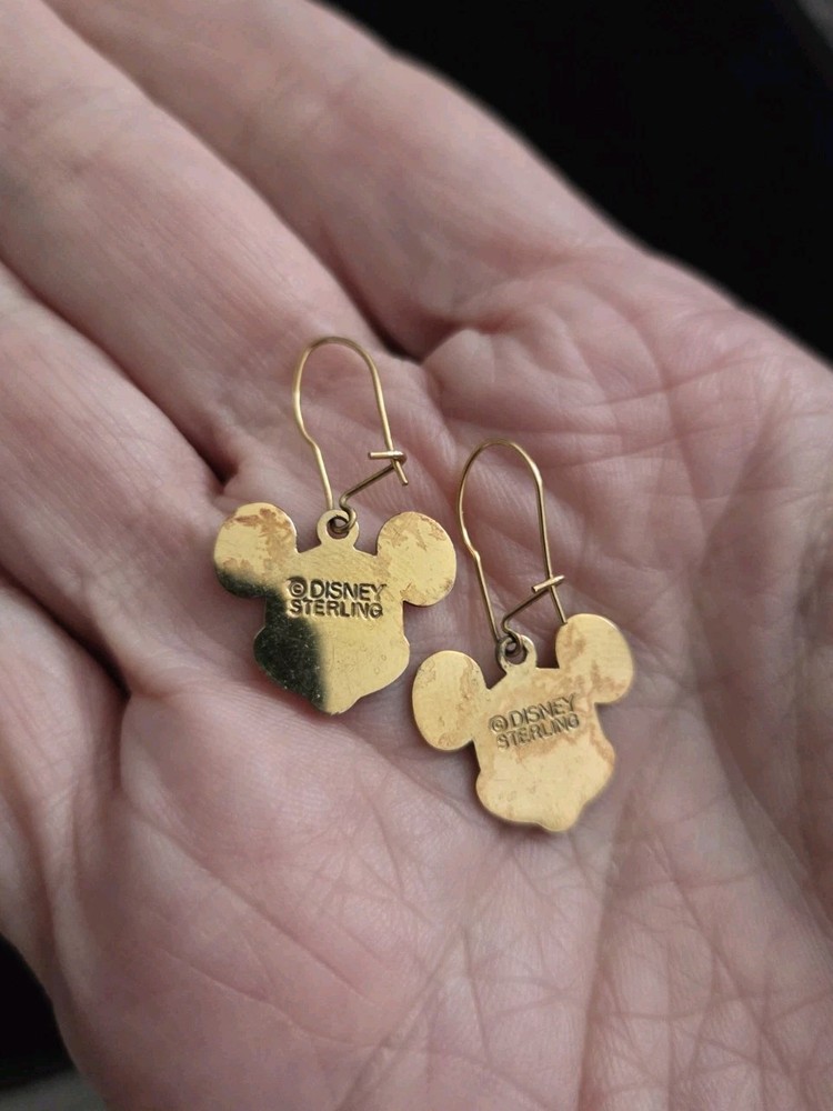 Vintage Sterling Silver MICKEY MOUSE Earrings Gold Vermeil Dangles DISNEY in beautiful vintage condition. They measure approximately 3/4" in diameter.