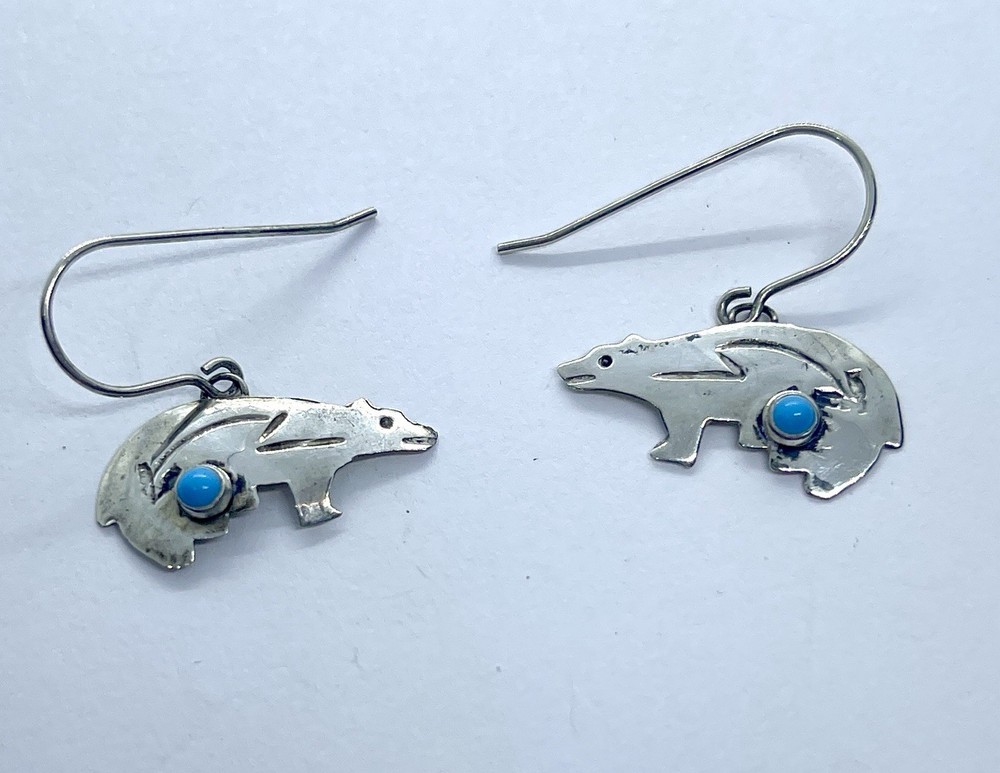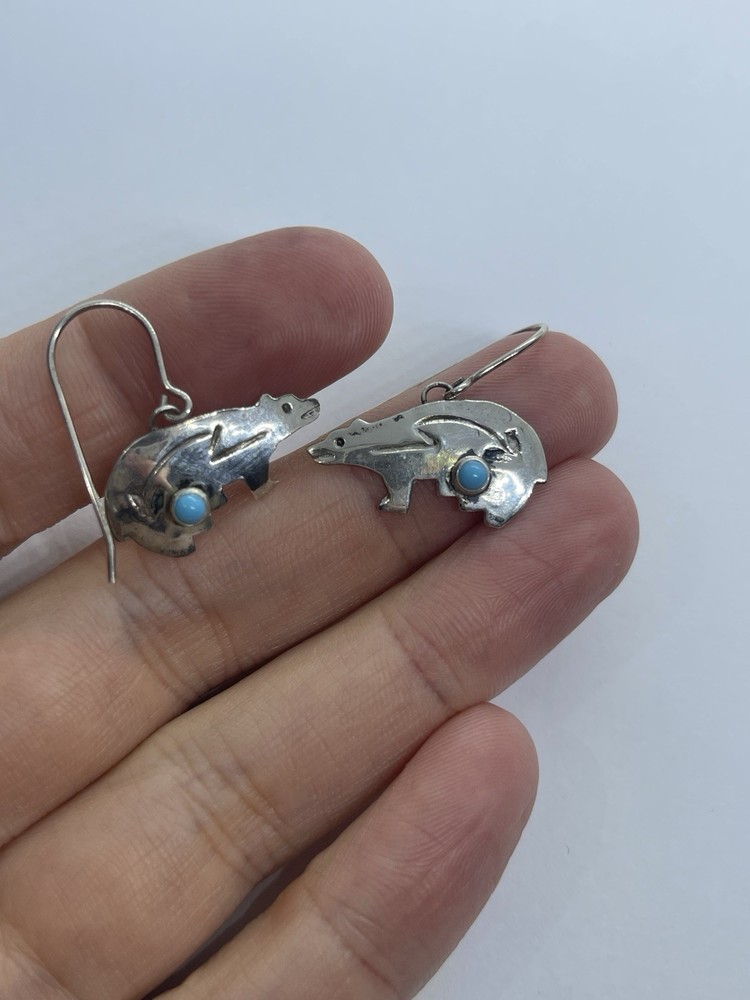 Vintage Sterling Silver & Turquoise Native American Bear Earrings Signed on the Backsides Tested Sterling Silver Be sure to see Photos Thanks for Looking