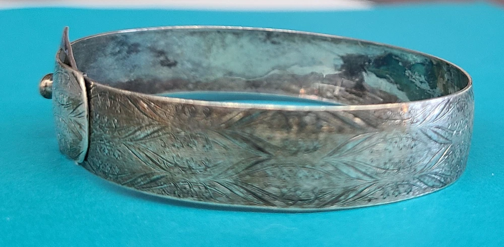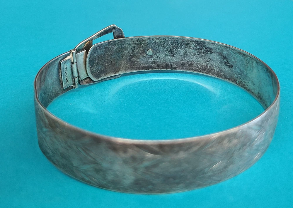 Vintage Sterling Silver Unique Belt Design Cuff / Bangle Bracelet 8" Circumference 0.5" Width of Bracelet Band Total Weight: 17.8 Grams In great visual and wearable condition! See all pictures for most details concerning time toning/use wear/etc Will appear best with a fresh polishing/cleaning You will receive the pictured items in the exact condition pictured, as we do not clean or alter any of the pieces we list Please ask questions
