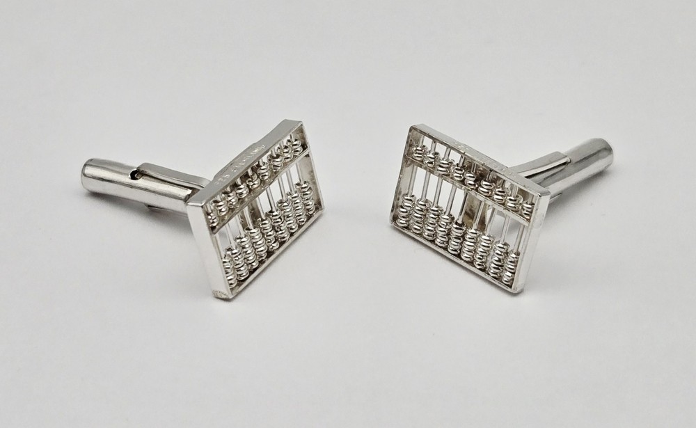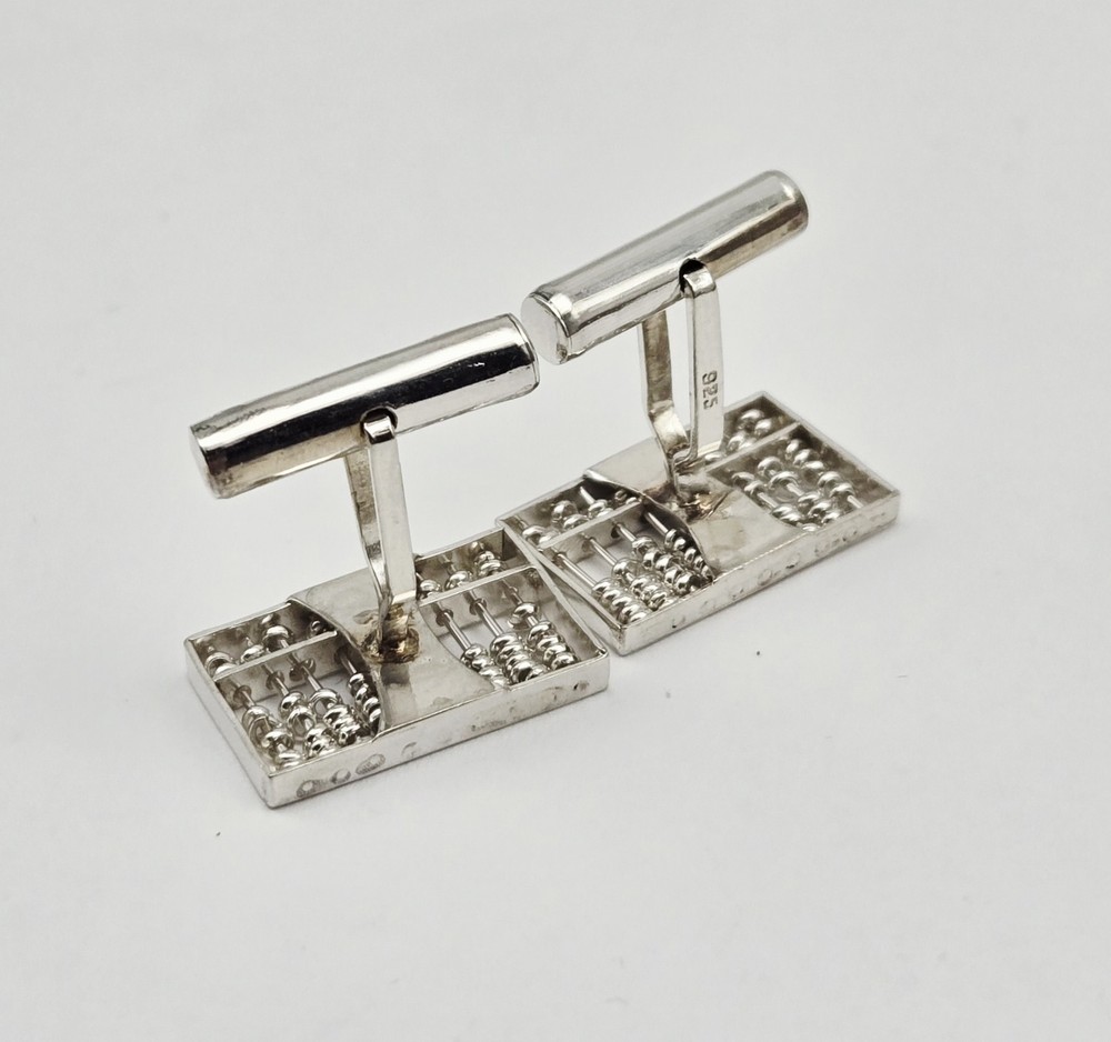 VTG Sterling Silver Working Abacus Mathematics Articulated Cufflinks - 6.5g