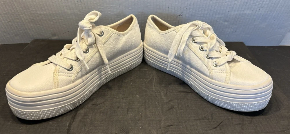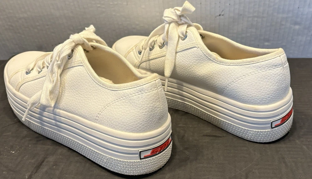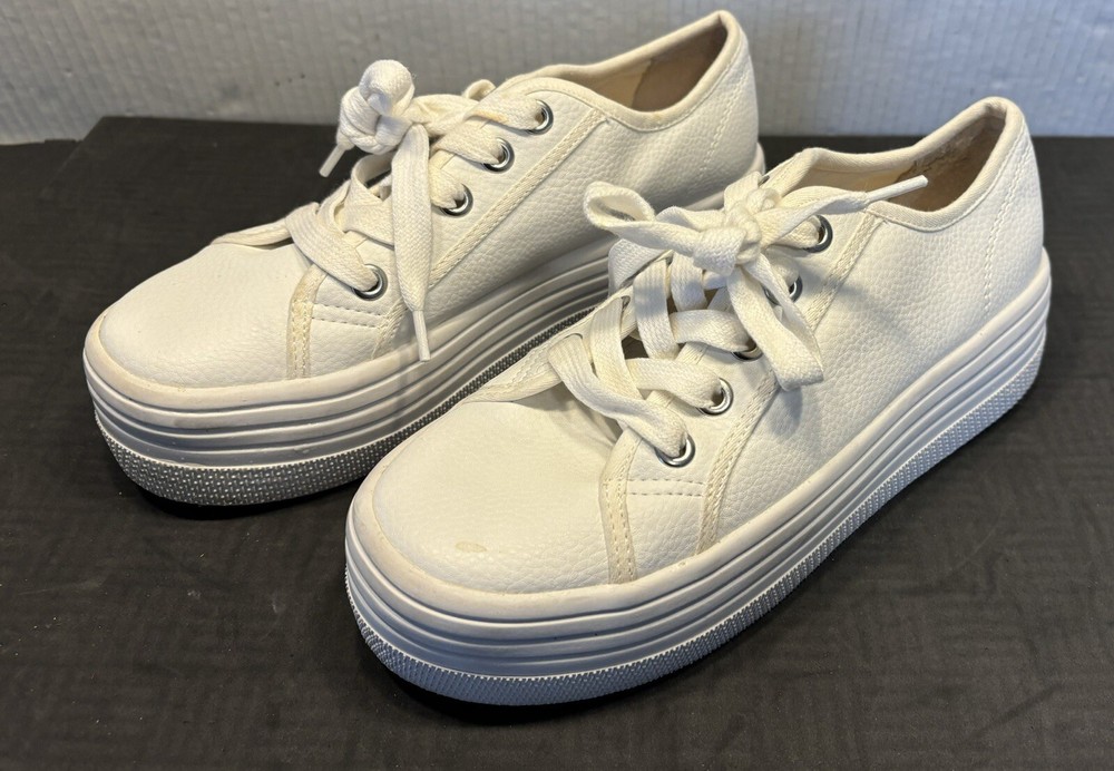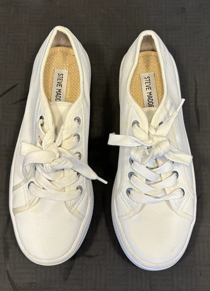 Steve Madden Women's Leather Flooked Sneakers Lace Up Shoes Size 6.5 M, White