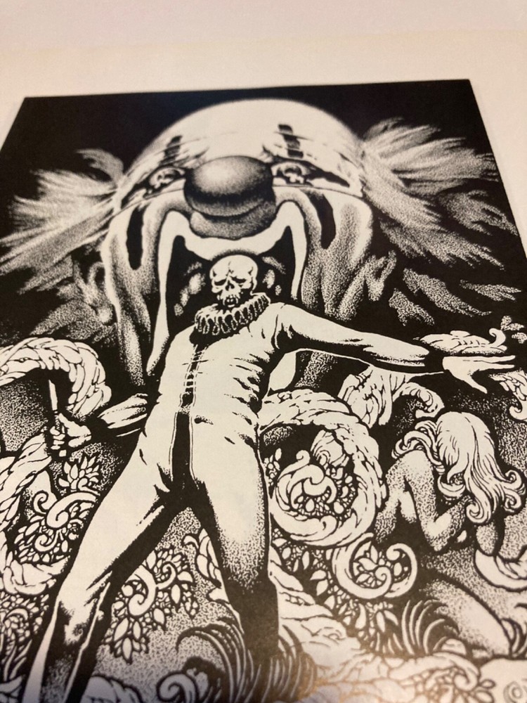Steven E. Fabian Art print from Carnifex Mardi Gras 1982 clown hoard and mob Steven E. Fabian amazing art prints from the many book illustrations he did over his career between 1970 and 1990. All black and white fantasy science fiction pictures with great detail. Share in his unbelievable career which lasted only 20 or so years due to his starting his art career at 37 years old.