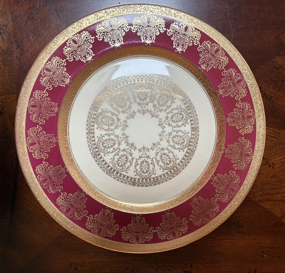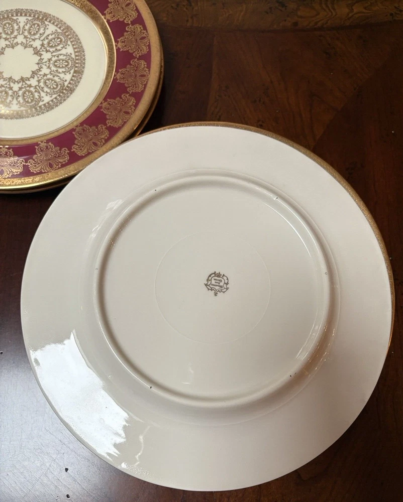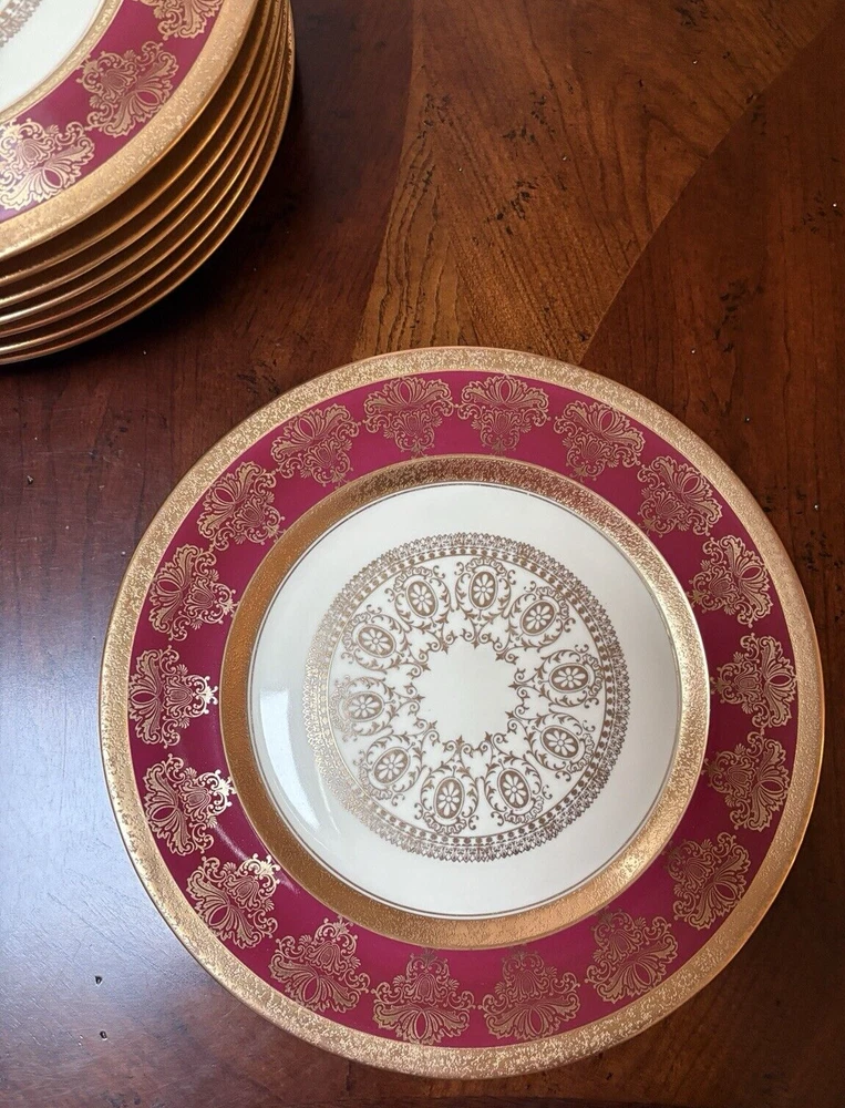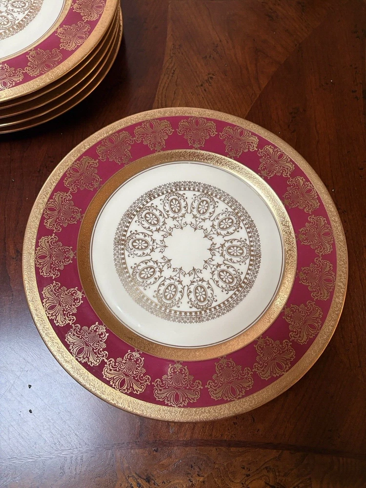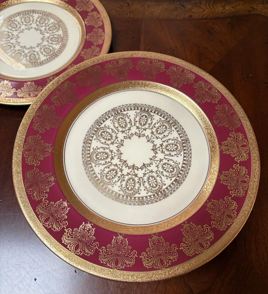 Set of four fine china dinner plates decorated with gold design and gold trim. There are 2 sets of four plates available. They are in excellent condition, no chips or cracks and the gold looks vibrant; there is some discoloration on the back of the plates that looks like a manufacturing imperfection. Measures (approx.): 11" DIA rim. They are marked on the bottom. Please see photos for more details. Please note that the item is vintage and may show signs of wear. We have done our best to honestly and accurately describe and photograph the item, including possible flaws. What you see are the actual photos of the item being sold. If you have any questions regarding the item, please ask! We DO NOT SELL outside United States. SHIPPING The item will be shipped within three business days after receipt of payment. We ship via USPS to any location within the 48 continental United States, NO INTERNATIONAL SHIPPING. Shipping is calculated by EBAY based on the weight and size of the item plus packaging. We can combine shipping in case you buy multiple items that can be safely shipped together. Thanks for looking!