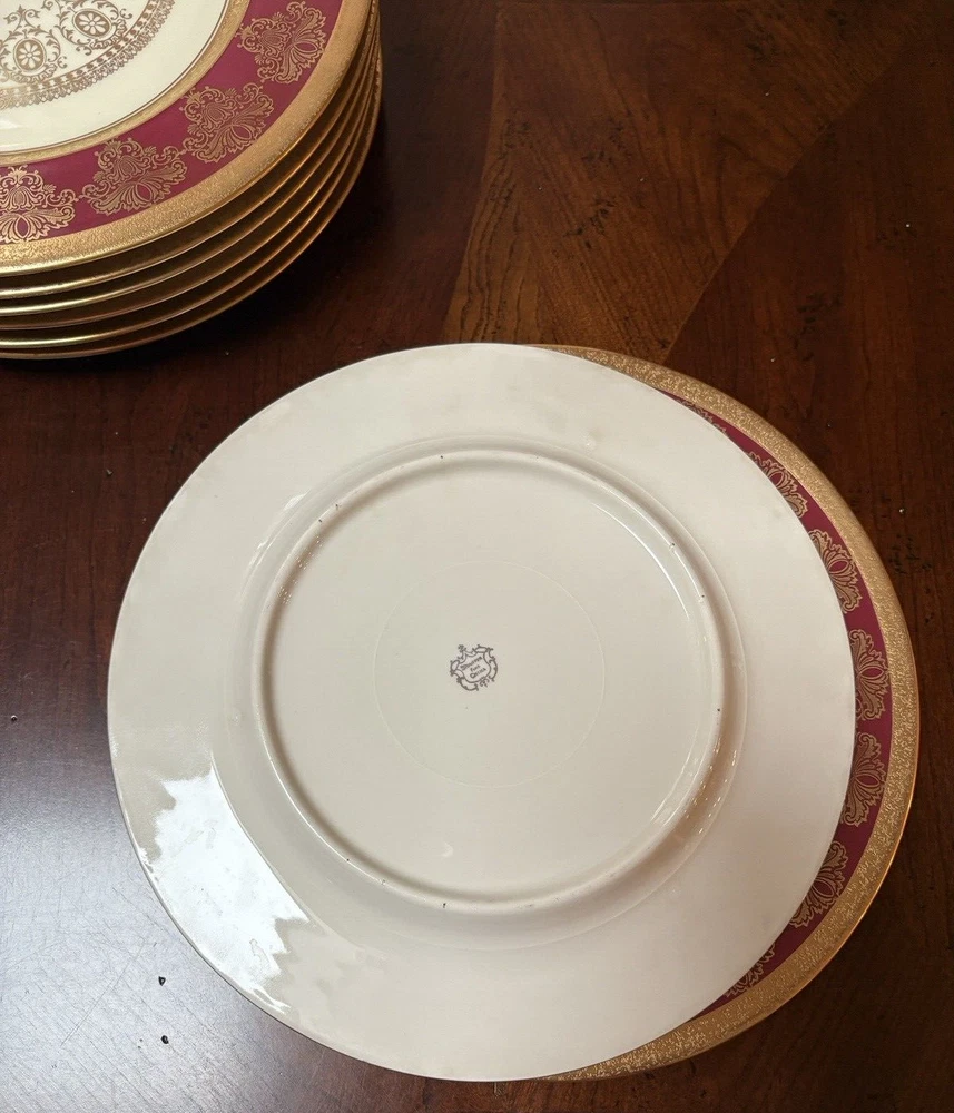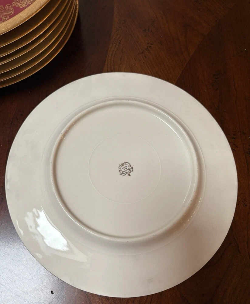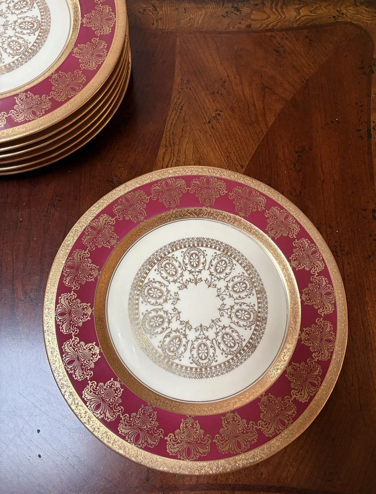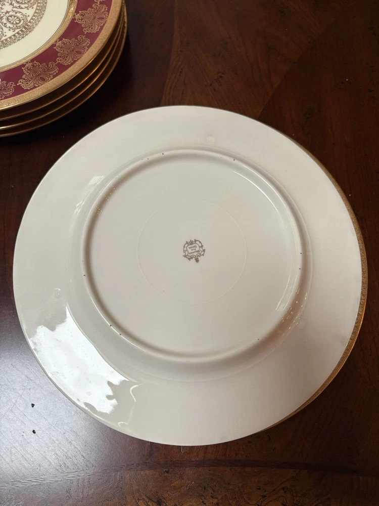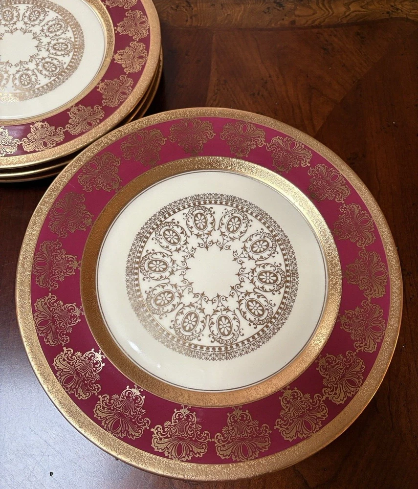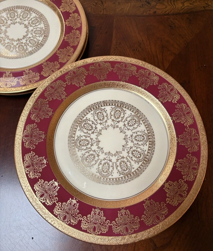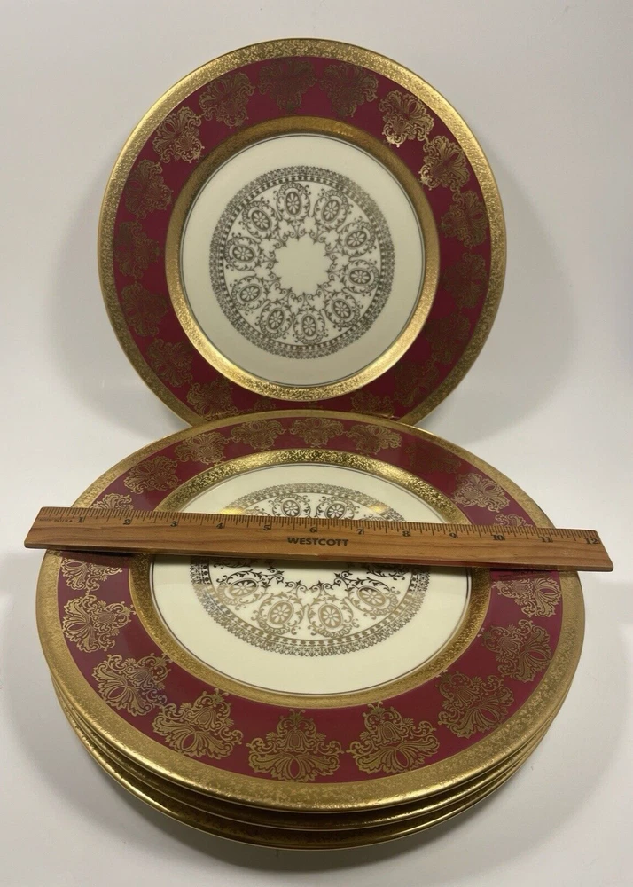 Vintage Stouffer USA Fine china Red & Encrusted Gold 11 in Plate Set of 4