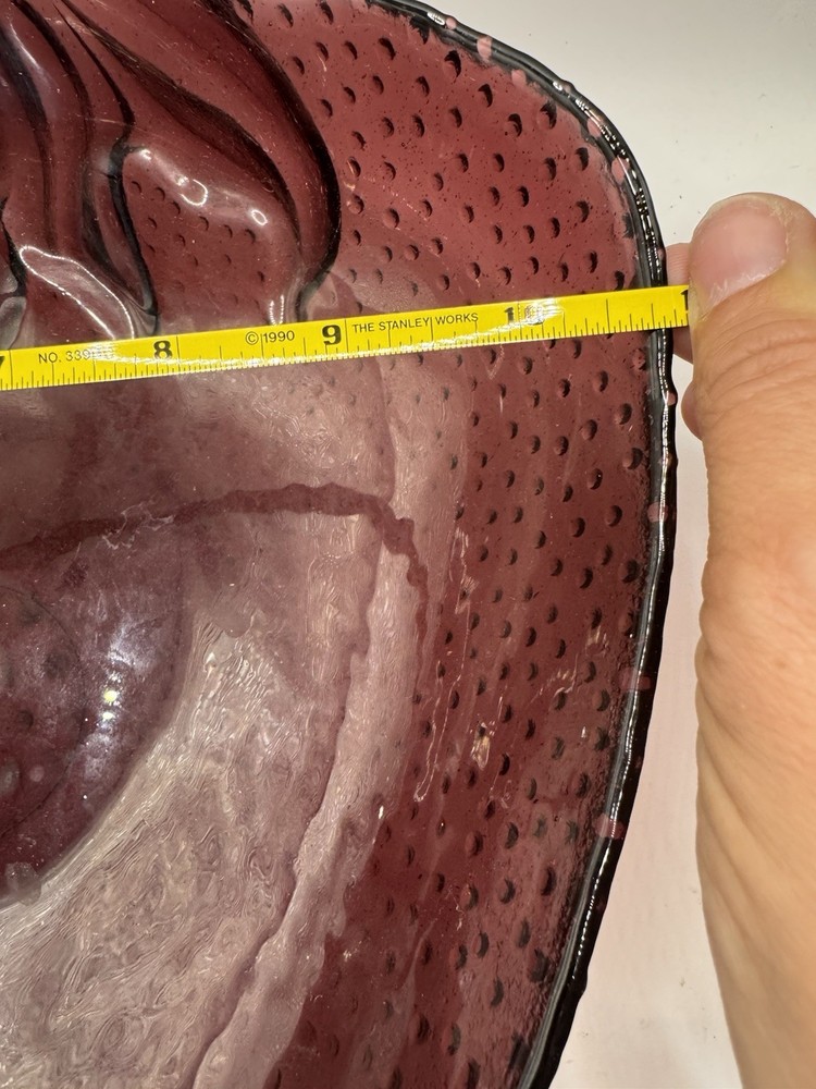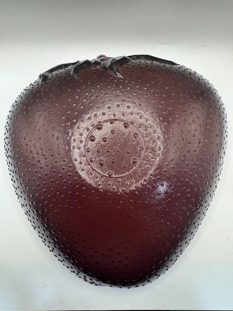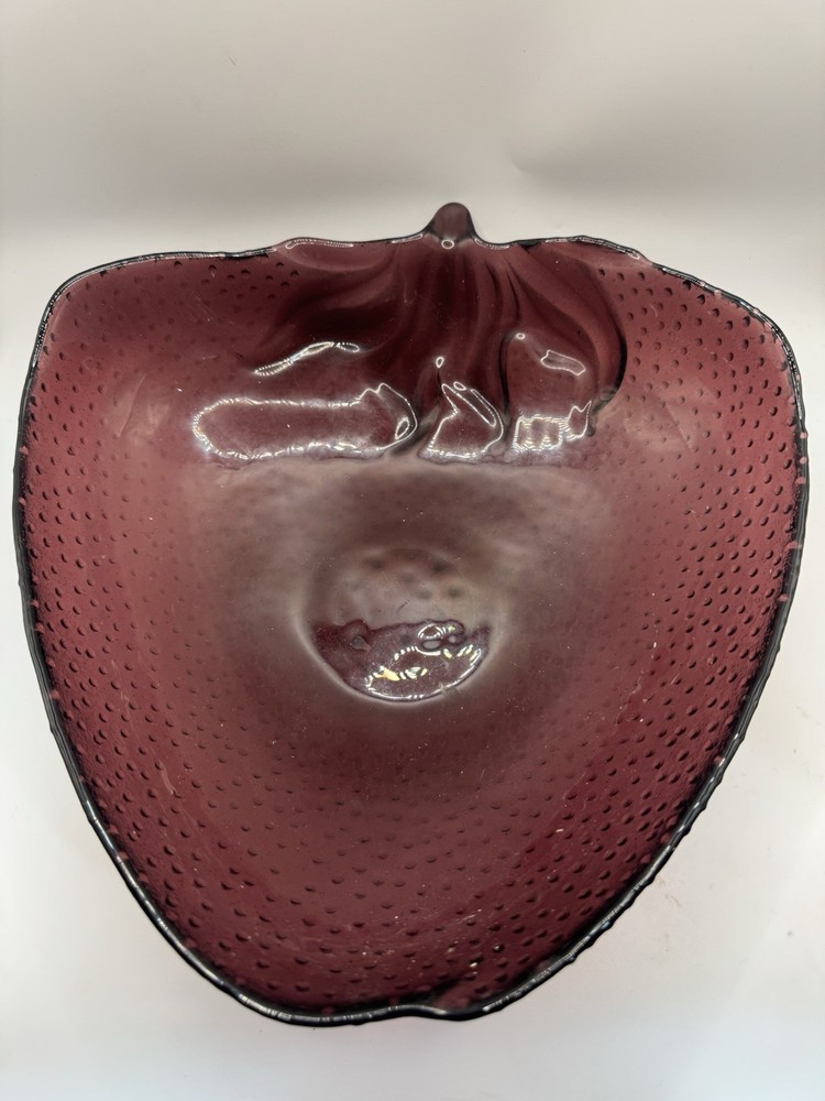 Charming vintage glass serving bowl in the shape of a strawberry. Deep red glass with detailed seeds and stem design. Perfect for serving fruit, salads, or as a decorative centerpiece for your kitchen or dining table. • Shape: Strawberry fruit • Material: Glass • Color: Red with embossed details • Style: Retro, Farmhouse, Summer Entertaining • Condition: Preowned, no chips or cracks (see photos) This fun and functional piece adds a pop of color to your table and makes a great collectible fruit-themed kitchen item.