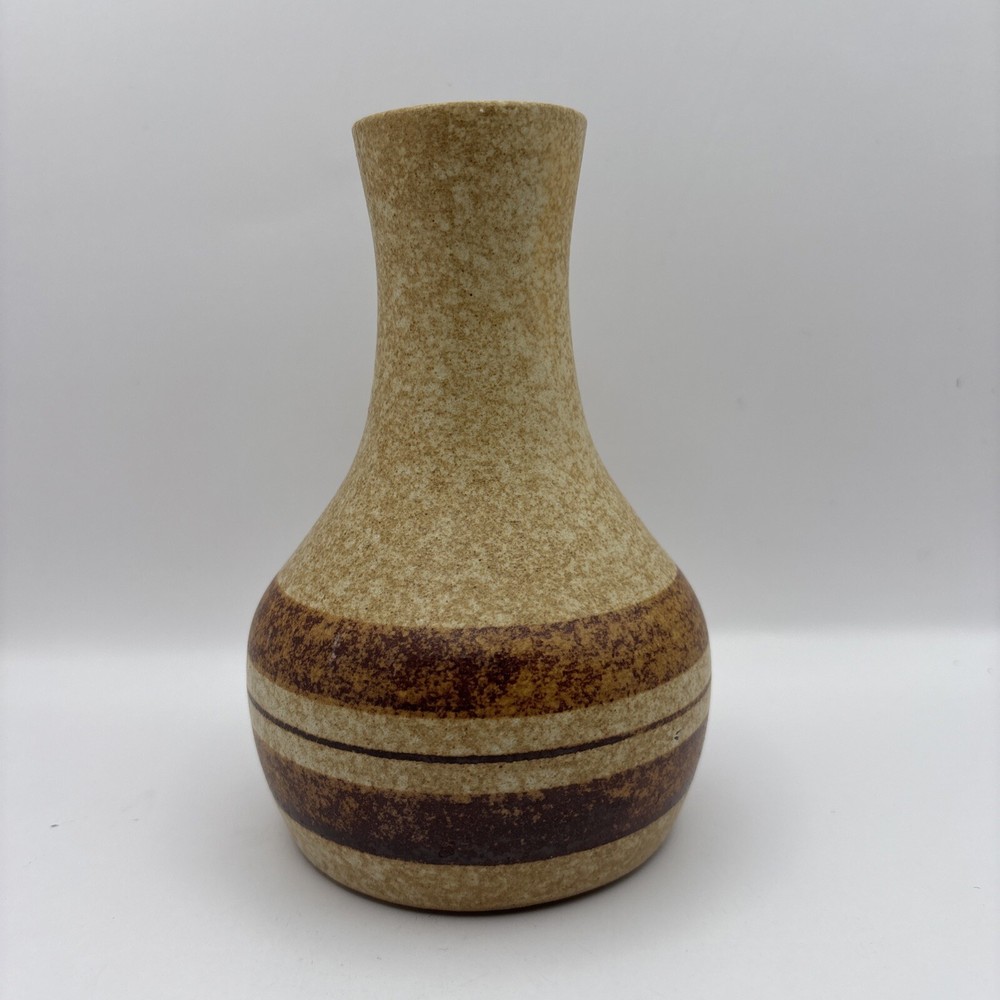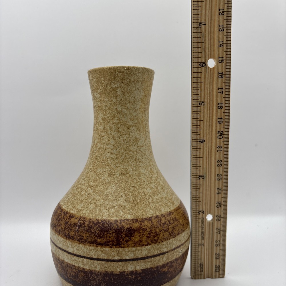 Vintage Pottery Craft USA Brown Tan Striped Vase~5 Inch