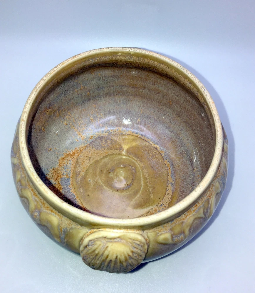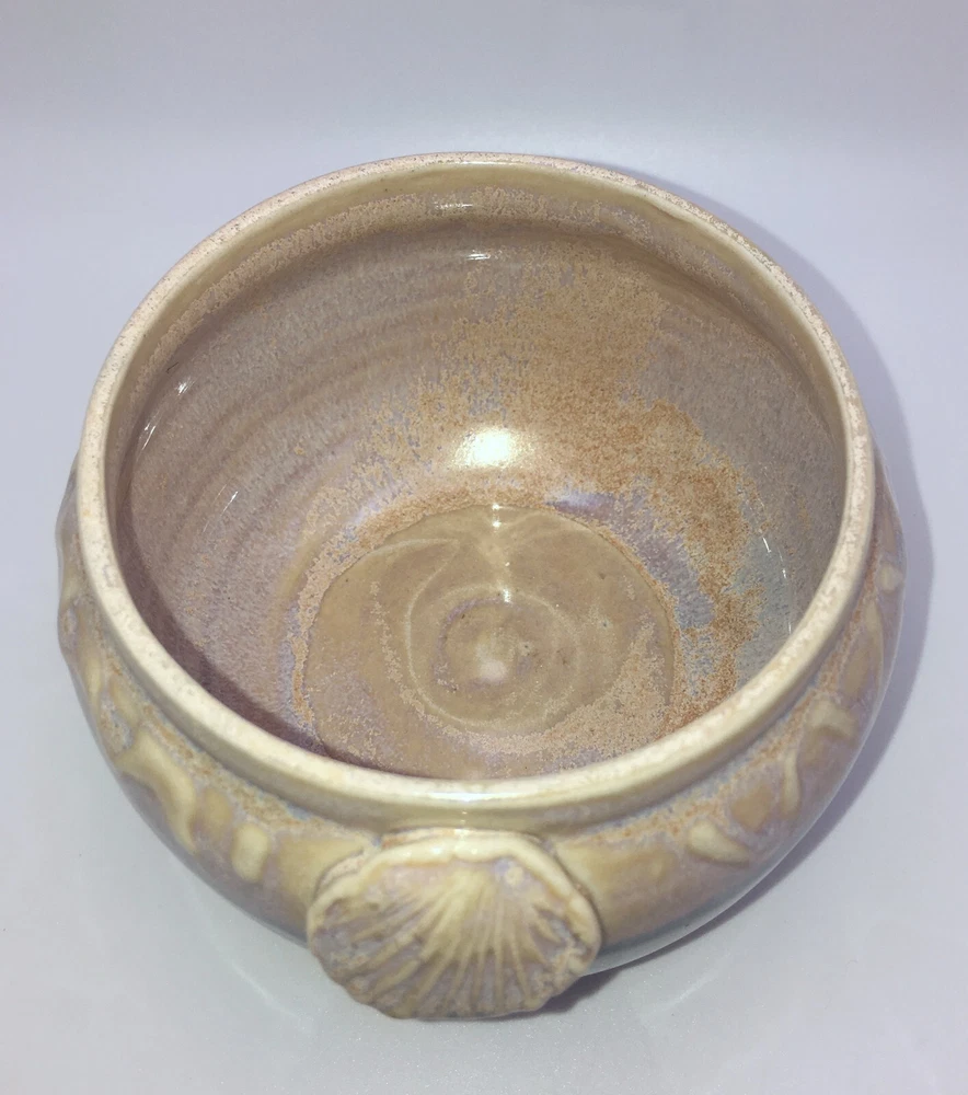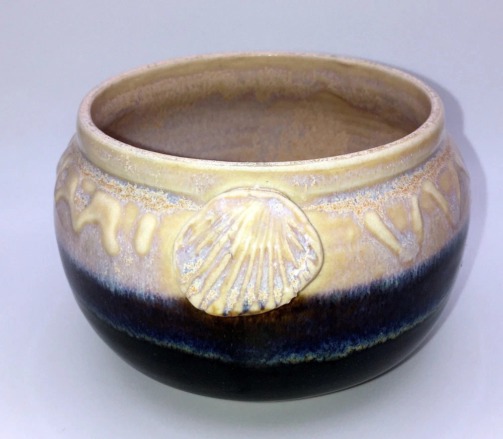 Vintage Studio Art Pottery North Carolina Bowl Seashell Artist Signed