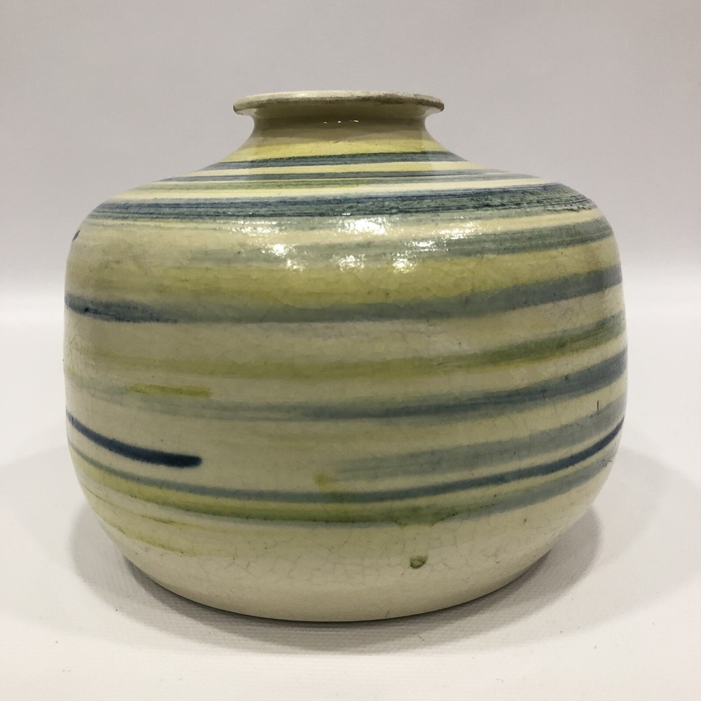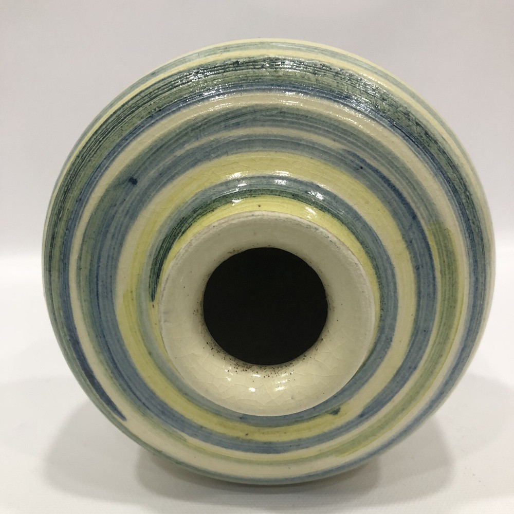 Vintage Round Studio Pottery Vase colorful Signed by E.T.B. 1975; 5.5” Tall; 1.5” Diameter. Condition is "Used in great shape! Shipped asap by USPS Priority Mail.